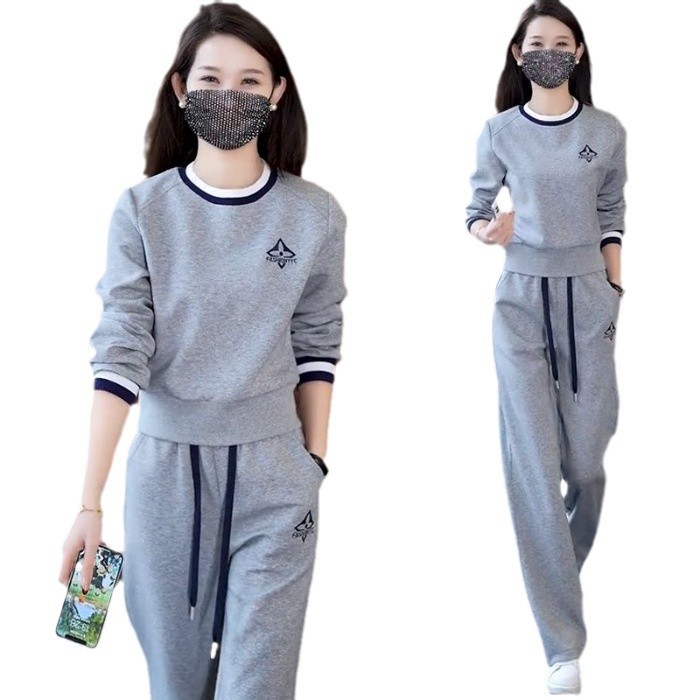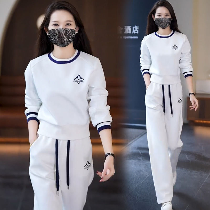Главная страница > Европейская станция повседневная спортивная одежда набор дамы весенний и осенний свободный модный круглый воротник свитерская широкая нога брюки из двух частей