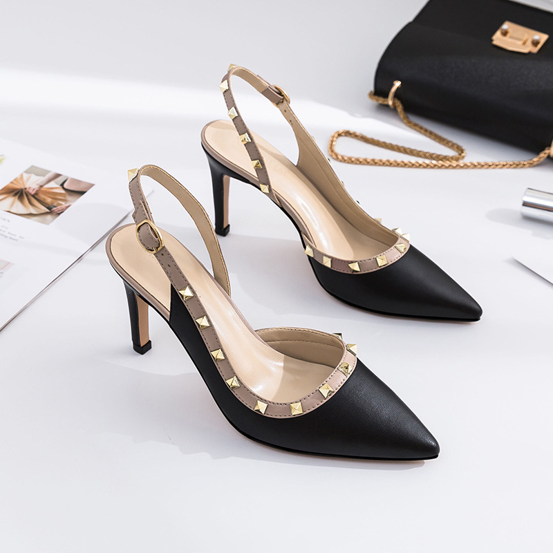 Туфли-лодочки из мягкой кожи с заостренным носком и пряжкой, закрытый носок, босоножки без задника, туфли на высоком каблуке с заклепками, женские туфли на шпильке оптом, туфли-лодочки на шпильке с заостренным носком.