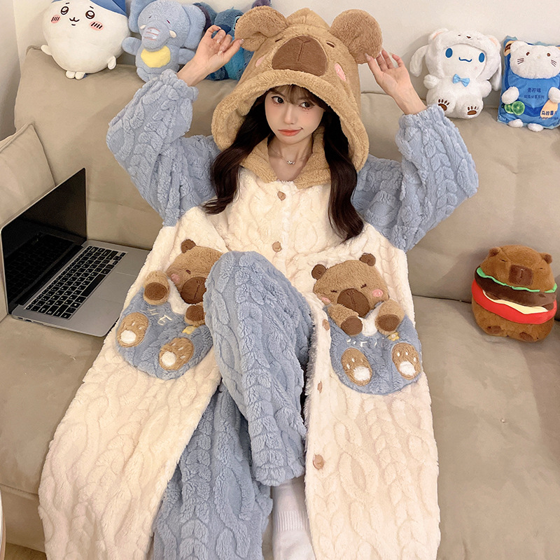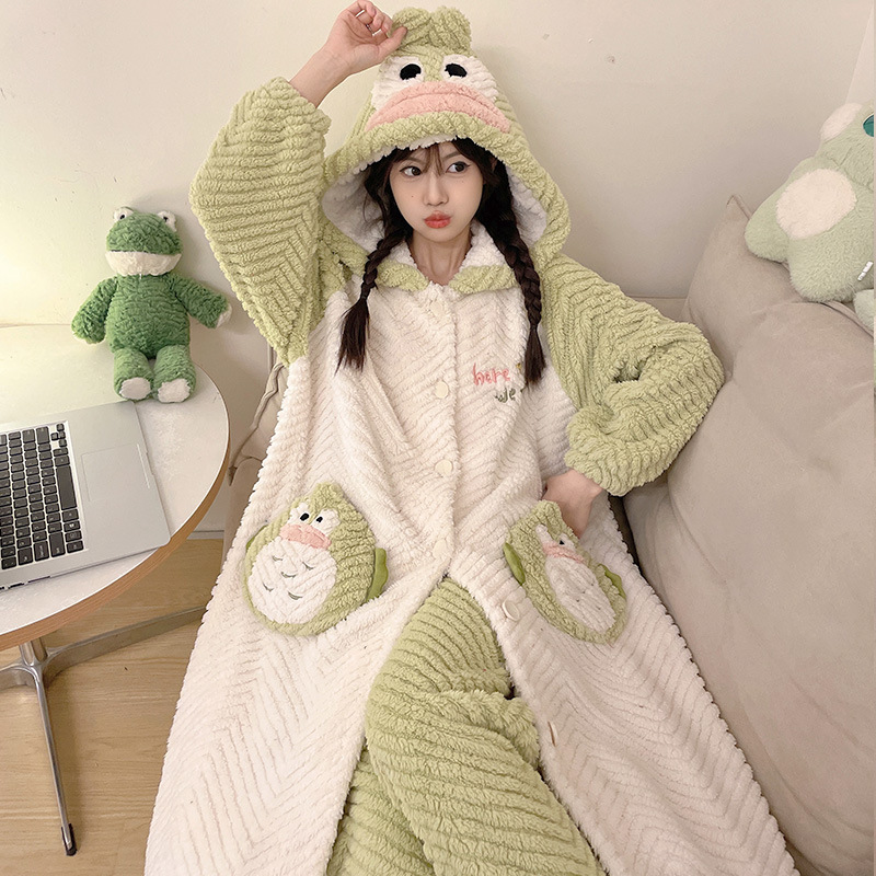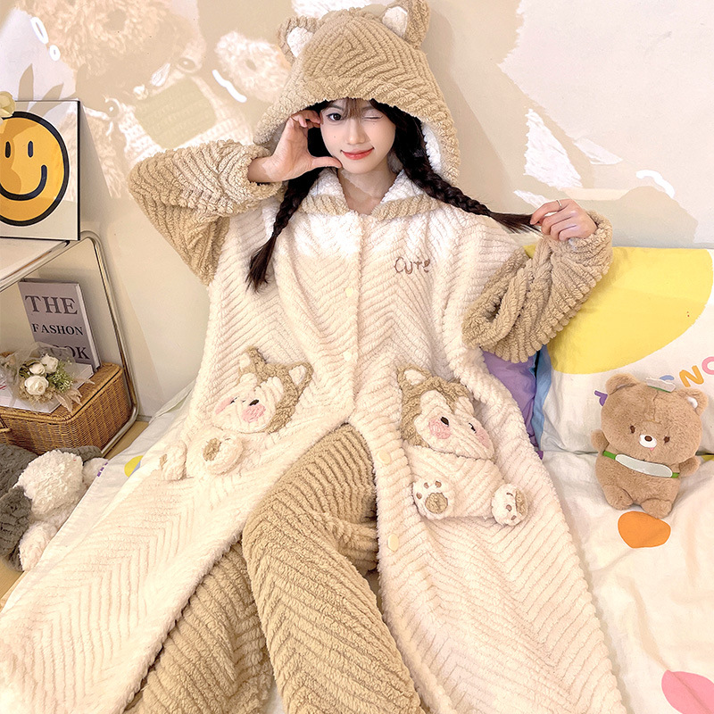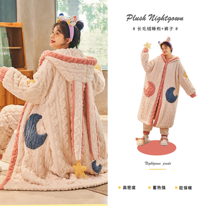 Главная страница > 2024 костюм ночной одежды женский фланелевый толстый осенний зимний пижама женский жаккардовый длинный халат коралловый бархат