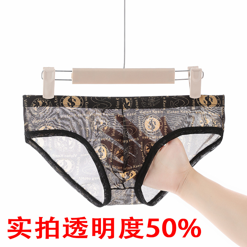 Прямые продажи с фабрики, мужские сетчатые трусы с персонализированным принтом, модные быстросохнущие полые прозрачные шелковые трусы с ощущением телесного цвета