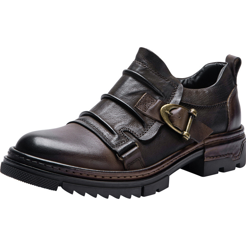 Главная страница > Повседневные кожаные туфли мужские туфли с низким уровнем кожи на голове, дикий винтажный механик обувь на толстой подошве кожаная круглая голова европейская мужская обувь