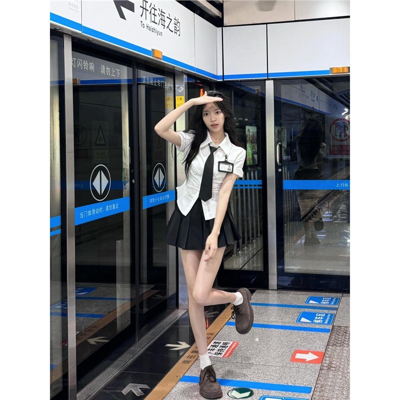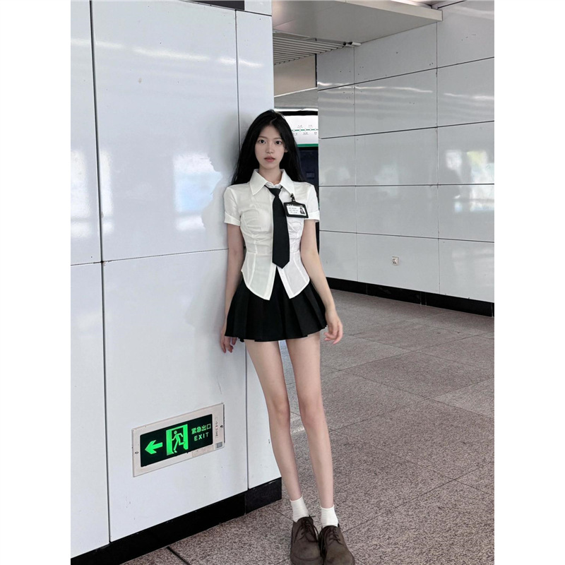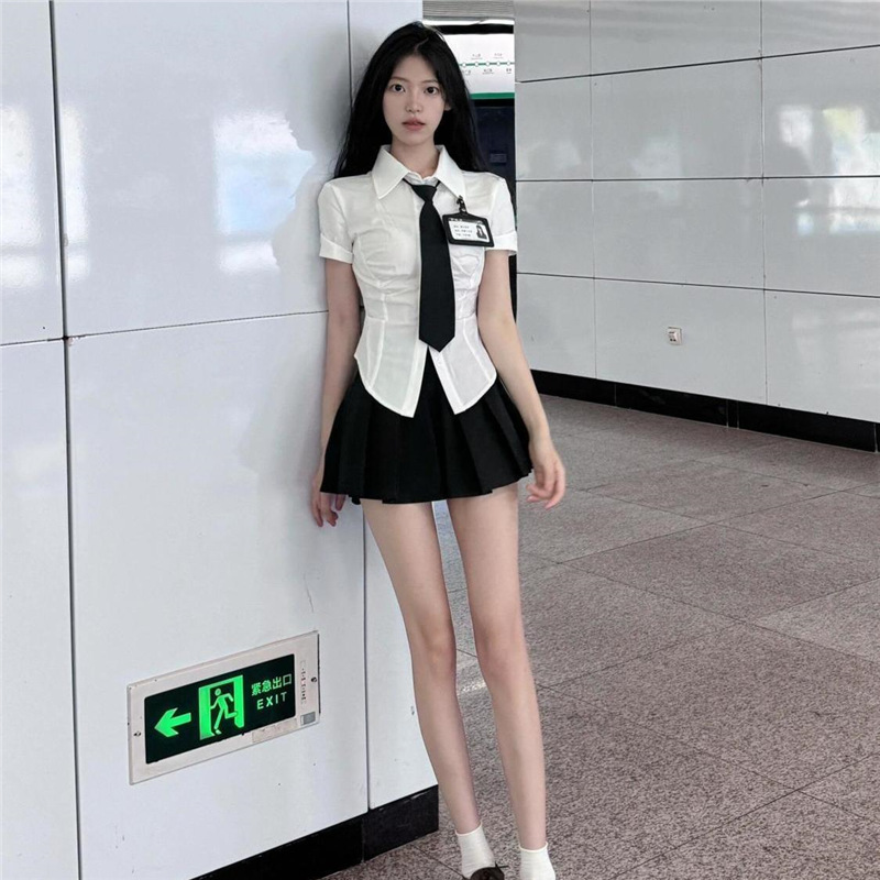 Главная страница > Униформа JK, белая рубашка с поясом для горячих девушек, плиссированная юбка, женский летний корейский стиль, утягивающий костюм в консервативном стиле