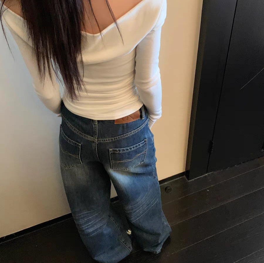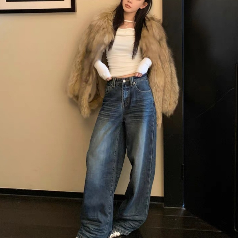 Главная страница > SUNONEONE1 Широкие ножки старые повседневные джинсы женские осень и зима прямые свободные ретро синие брюки с низкой талией