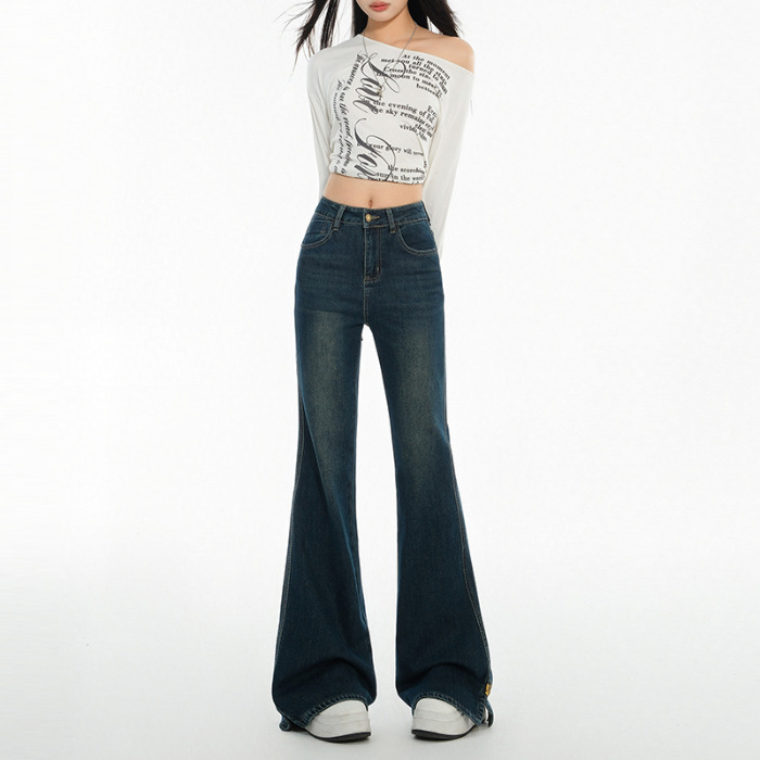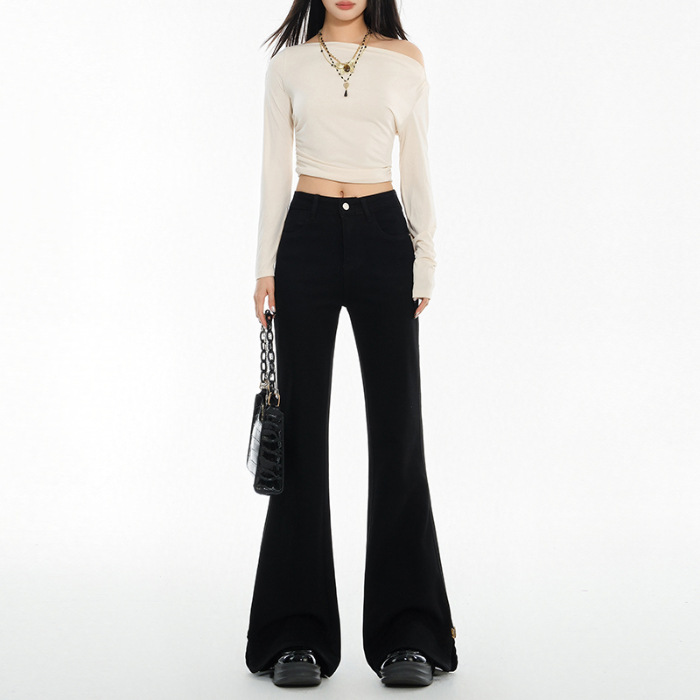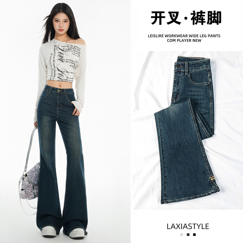 Главная страница > Большой размер толстый MM ранней весной с открытыми врасплками микро-эла джинсы женский 2025 новый стройный, тонкая подкова рога девять очков черный