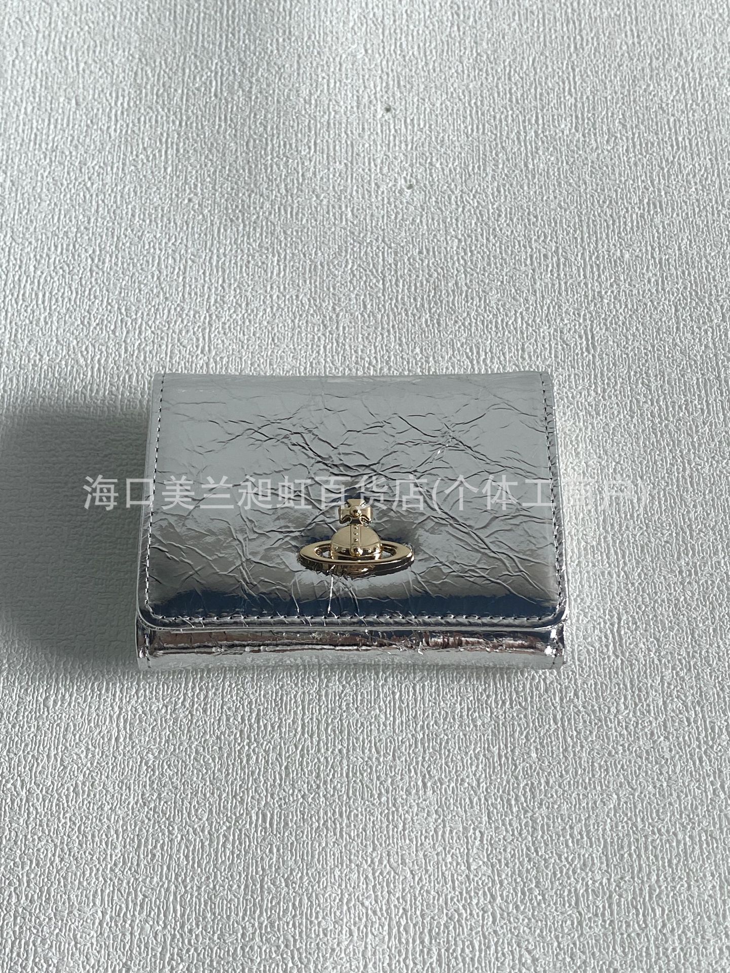 Короткий кошелек из лакированной серебряной кожи с тиснением