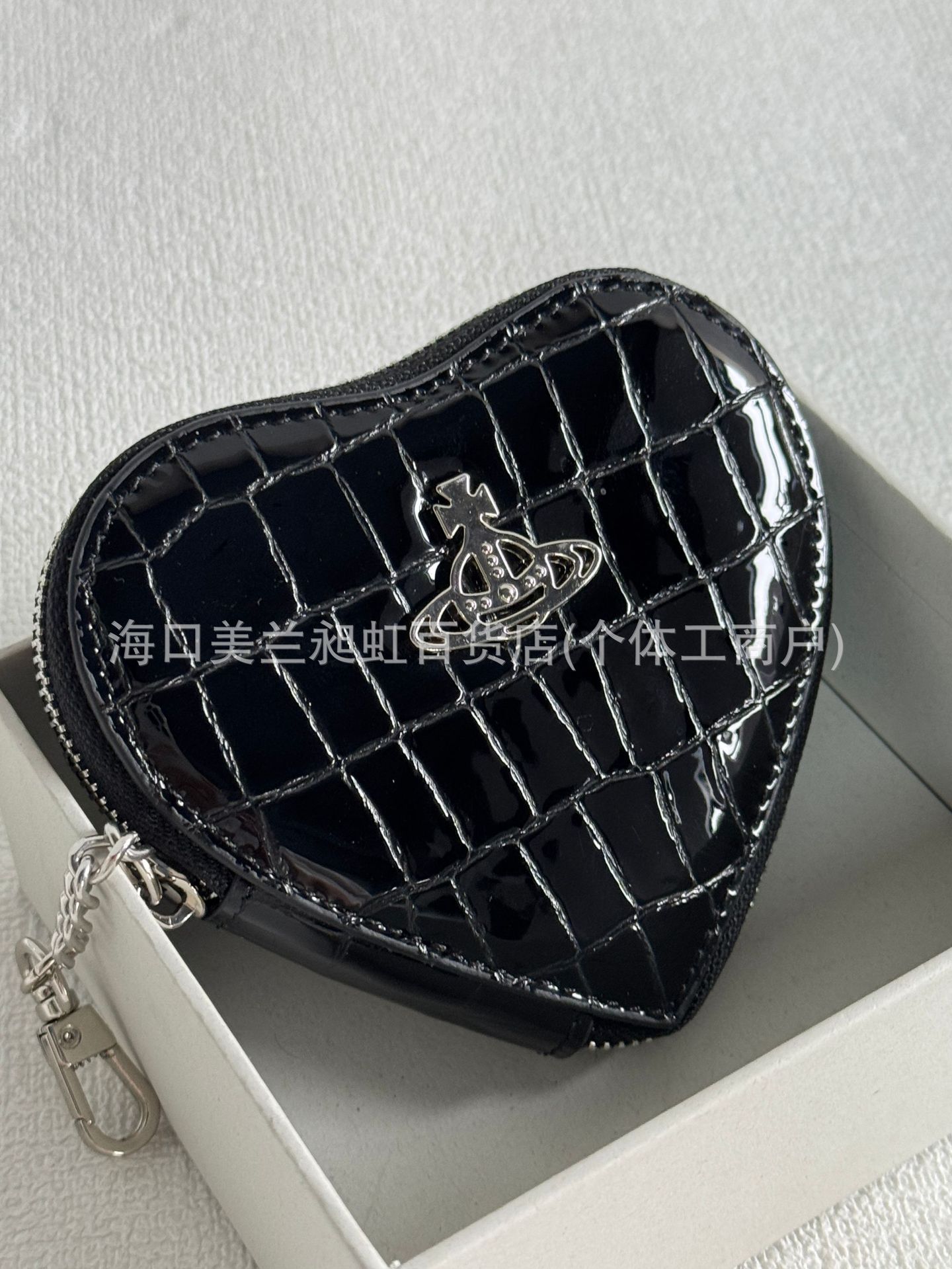 Черная сумка для ключей в форме сердца с узором под крокодила