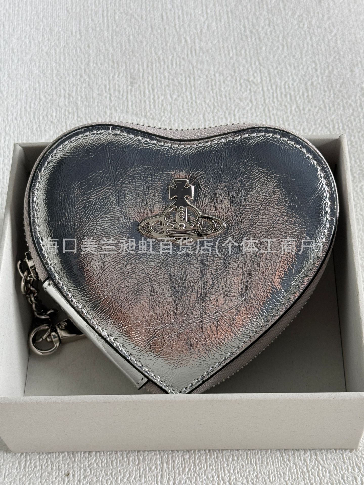 Серебряная сумка для ключей в форме сердца