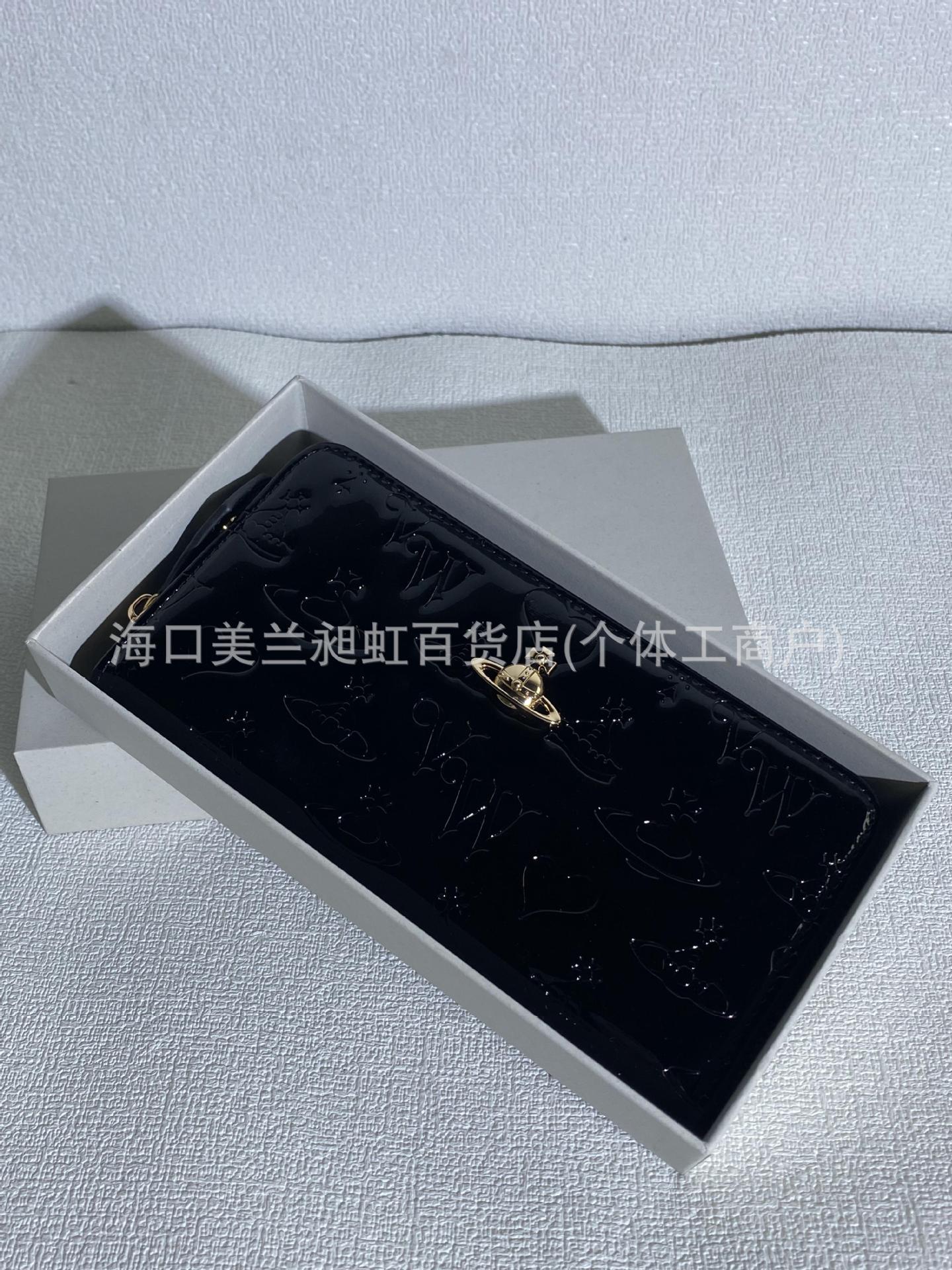 Длинный кошелек из черной лакированной кожи с тиснением