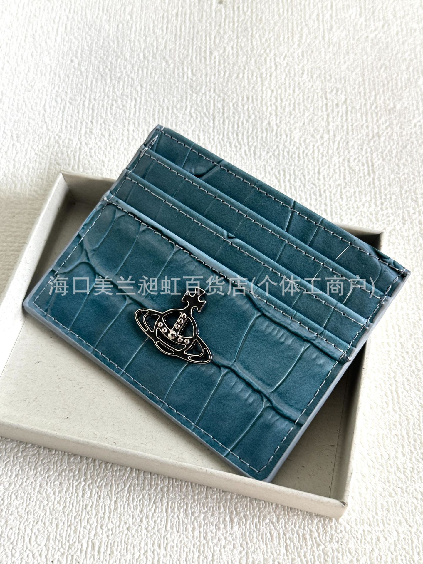 Синий держатель для карт с несколькими слотами и узором под крокодила