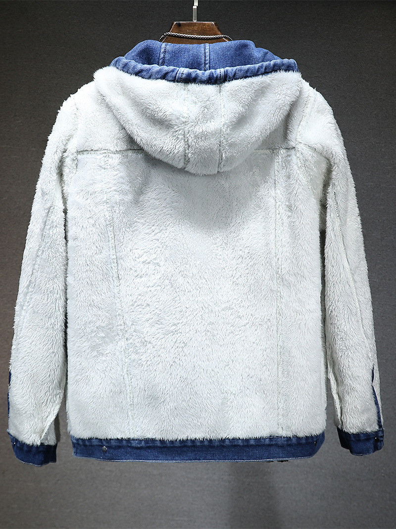 Главная страница > Новая утолщенная теплая мужская куртка, зимняя цельная куртка из искусственного кашемира с капюшоном и бархатной джинсовой курткой для молодых мужчин