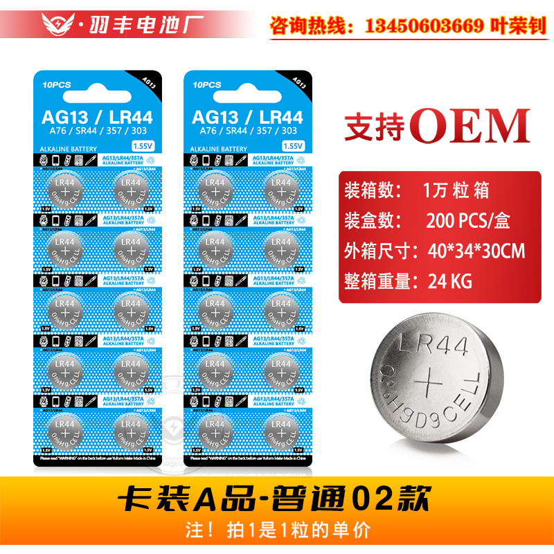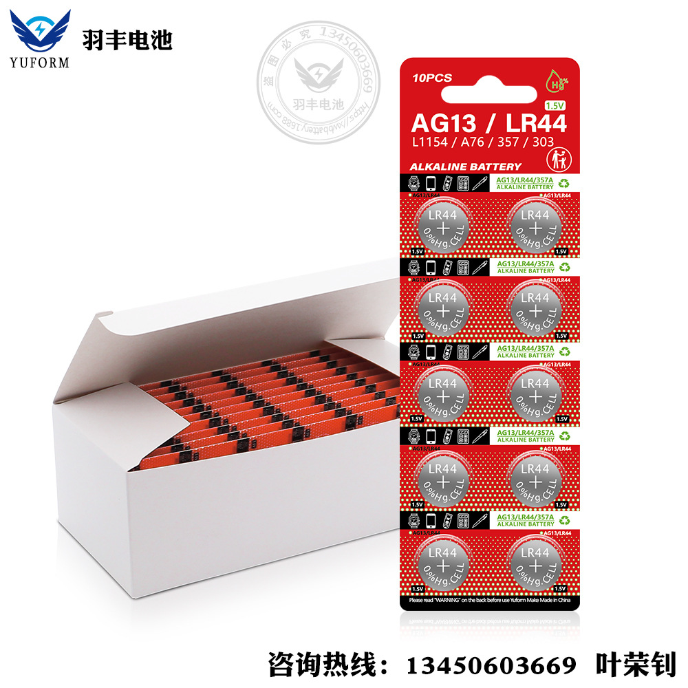 Батарея пуговицы от Yufeng LR44 AG13 Часы игрушки Подарочная электроника 1.55V Щелочной цинк-марганцевый аккумулятор