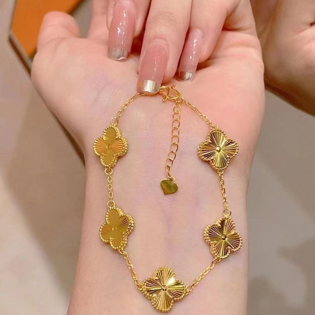 Вьетнамский браслет из песочного золота с четырьмя листами клевера для женщин, имитация золота, магазин в том же стиле, нишевый браслет с пятью цветами, прямая трансляция, горячая поставка