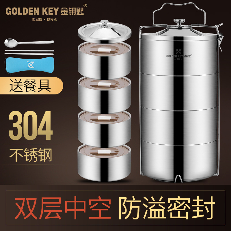 Золотой Ключ Официальные Прямые Продажи 304 Из Нержавеющей Стали Коробка Обеда Изоляции Ведро Четырехслойный Коробка Обеда Корзина Оптовая
