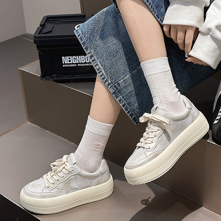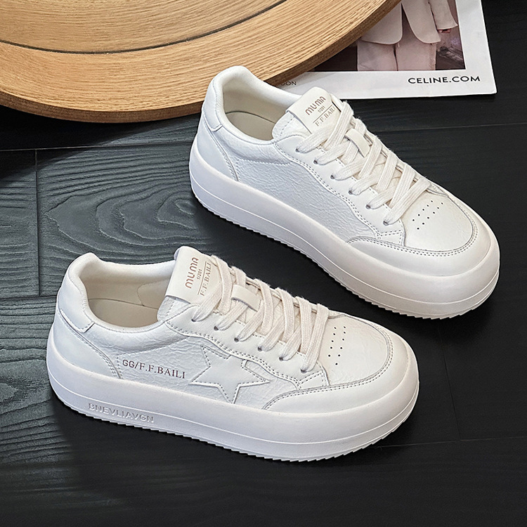 Главная страница > Кожаные маленькие белые туфли женские 2025 новые золотые стирание старые дикие женские туфли на толстой подошве мягкие звезды повседневные спортивные кроссовки