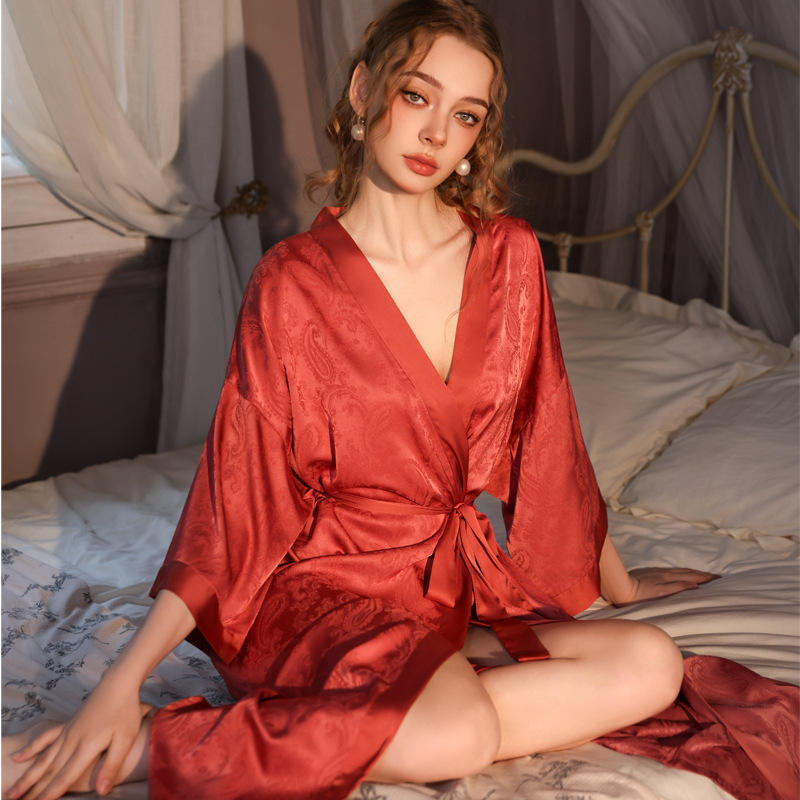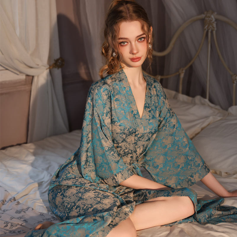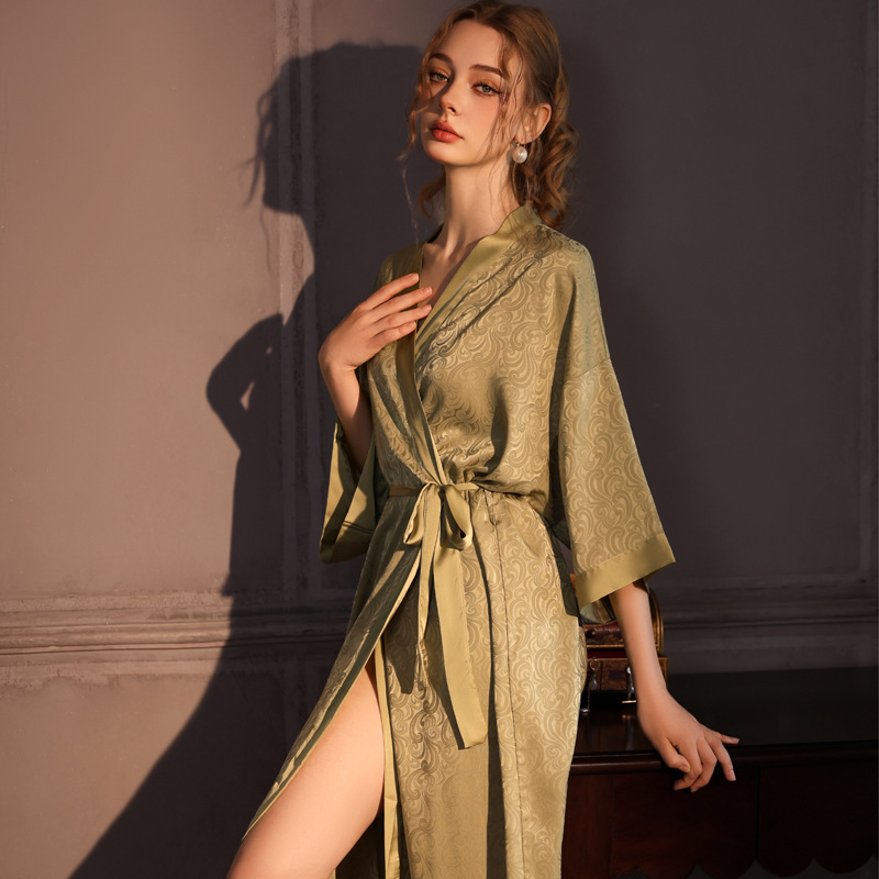 Главная страница > Жаккардовая ночная рубашка, женский весенне-осенний длинный халат, юбка для ванны, ледяной шелк, высококачественная атласная домашняя одежда, одиночный халат, можно носить на улице