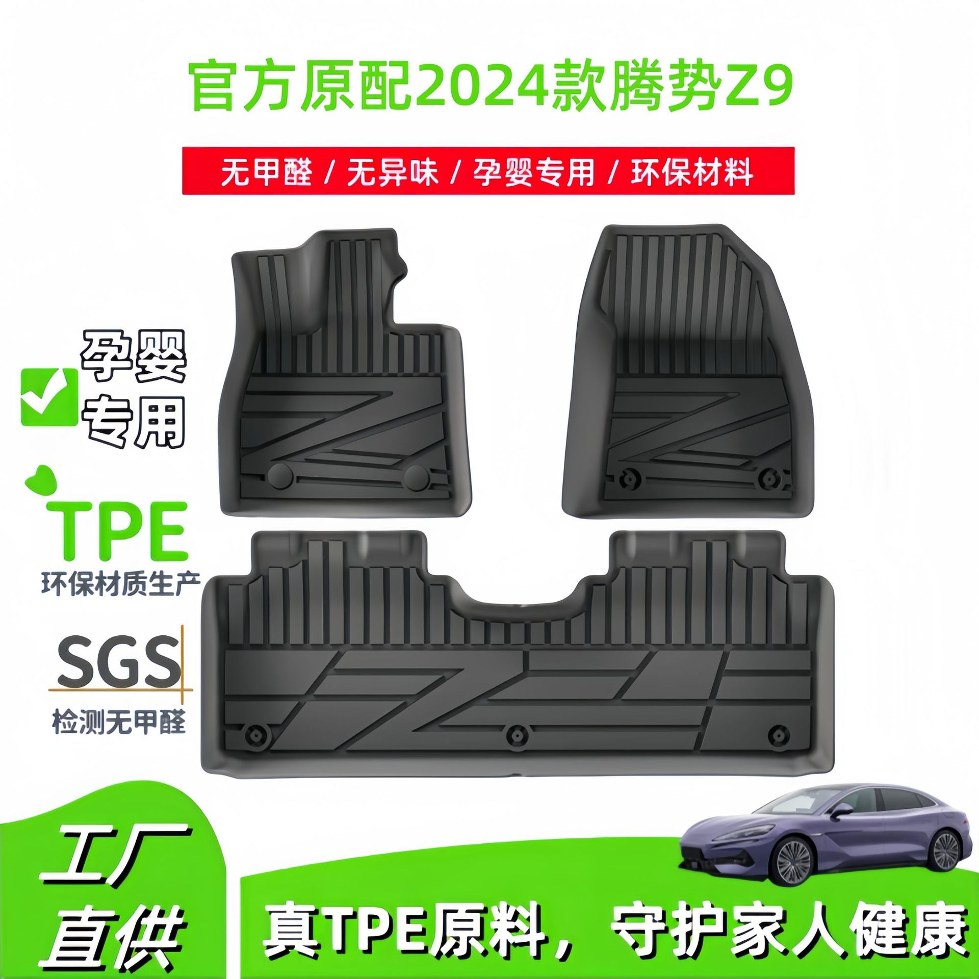 Подходит для автомобильных ковриков Tensile Z9 2024, небьющиеся напольные коврики из ТПЭ, специальные автомобильные коврики, коврики для хвостовой коробки.