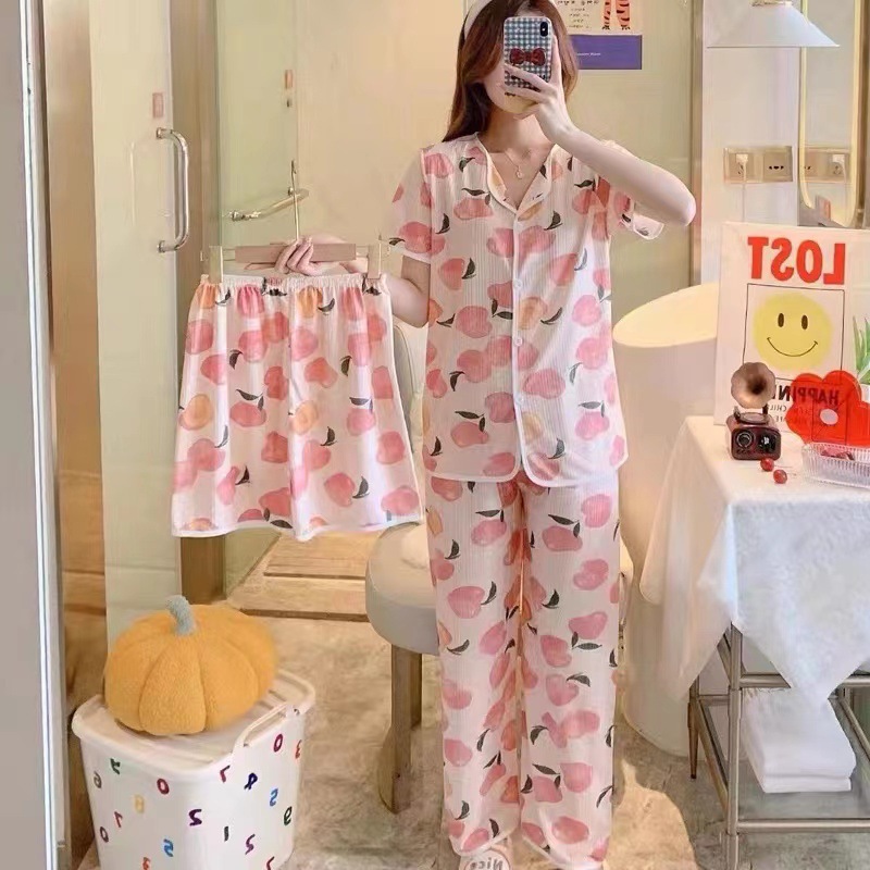 Главная страница > Летняя пижама с короткими рукавами женский набор из трех частей весной и летом новый свободный молочный шелк