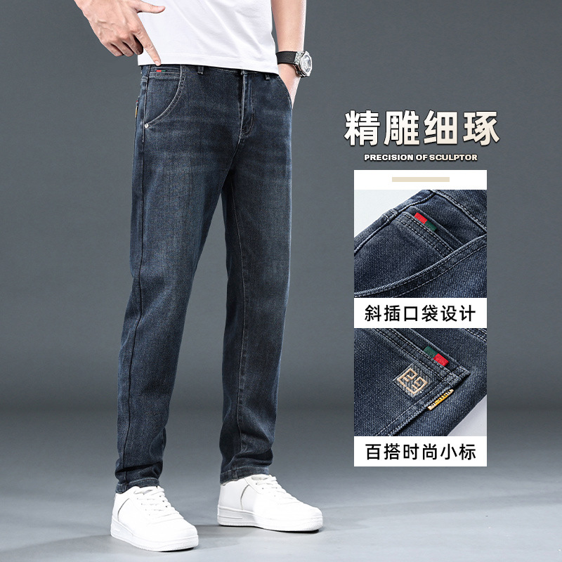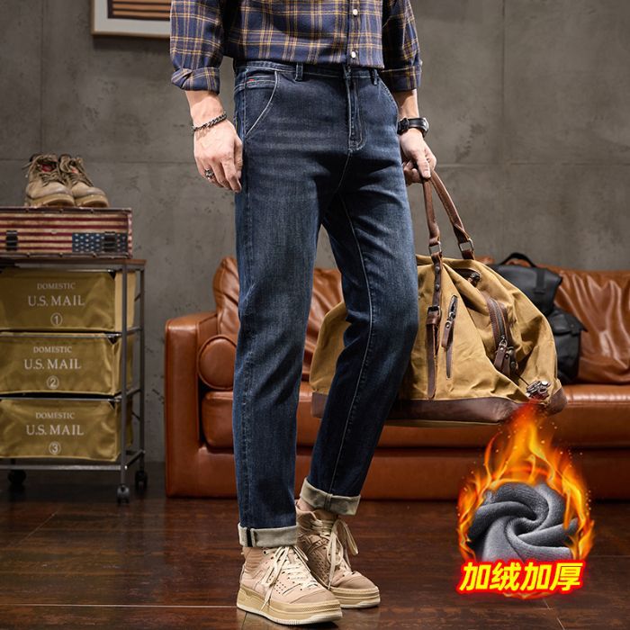 Главная страница > Популярные мужские прямые свободные джинсы с флисовой подкладкой, утолщенные, универсальные, модные, на осень и зиму, брендовые, стрейчевые, укороченные брюки