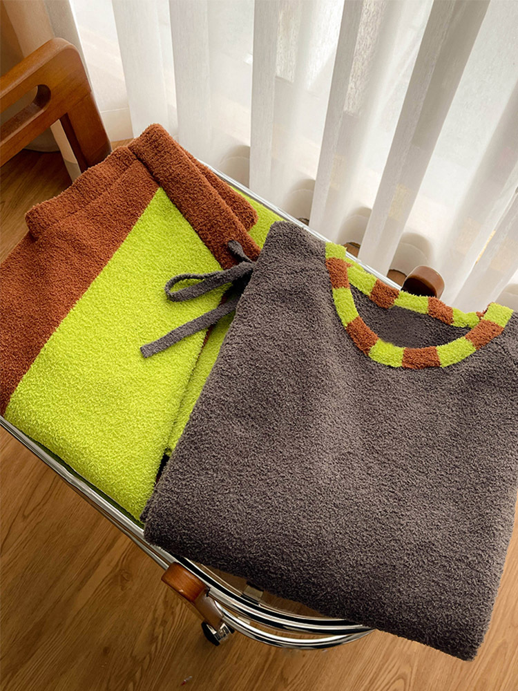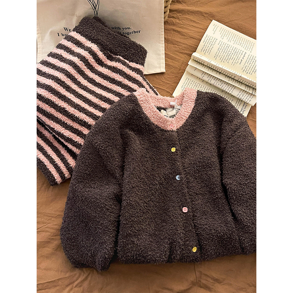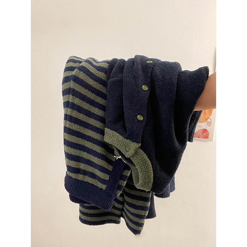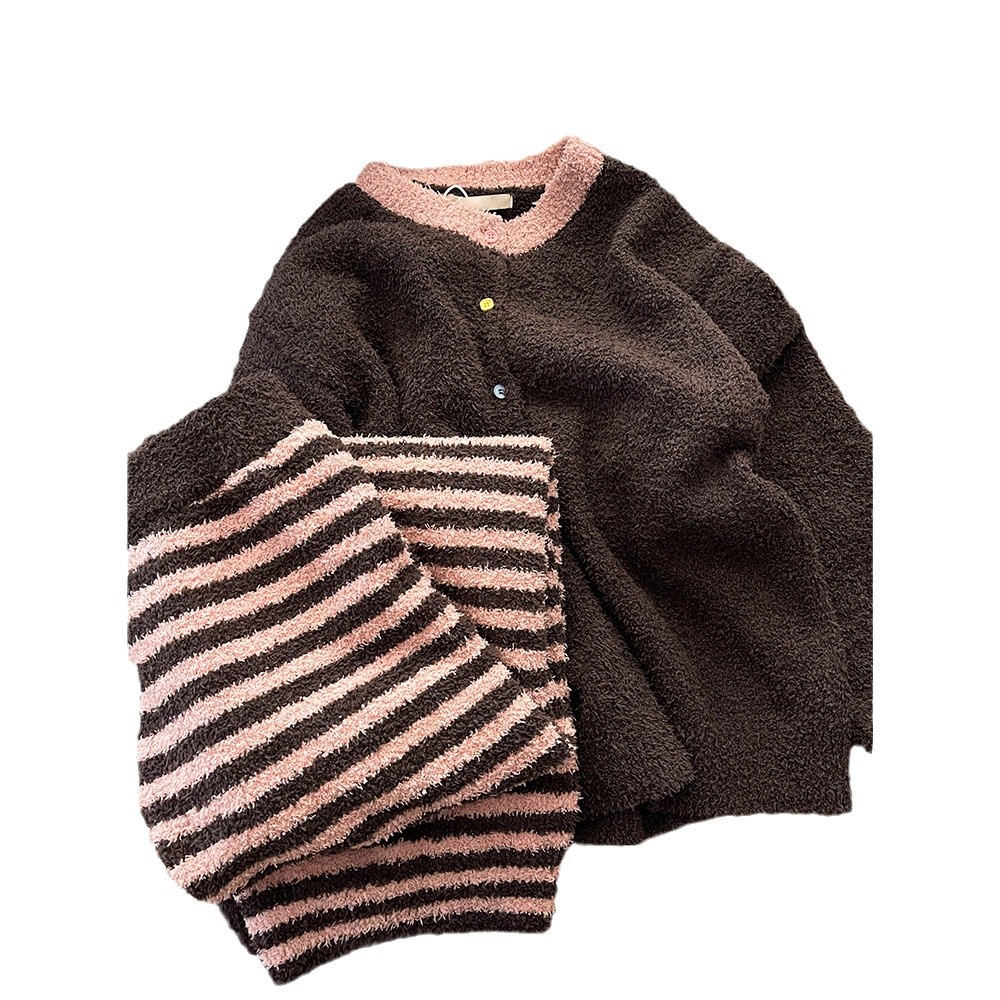 Главная страница > В наличии: Женский комплект домашней одежды из полуплюшевой трикотажной ткани в полоску, новая зимняя модель, подходит для выхода в свет, утолщенный и теплый.
