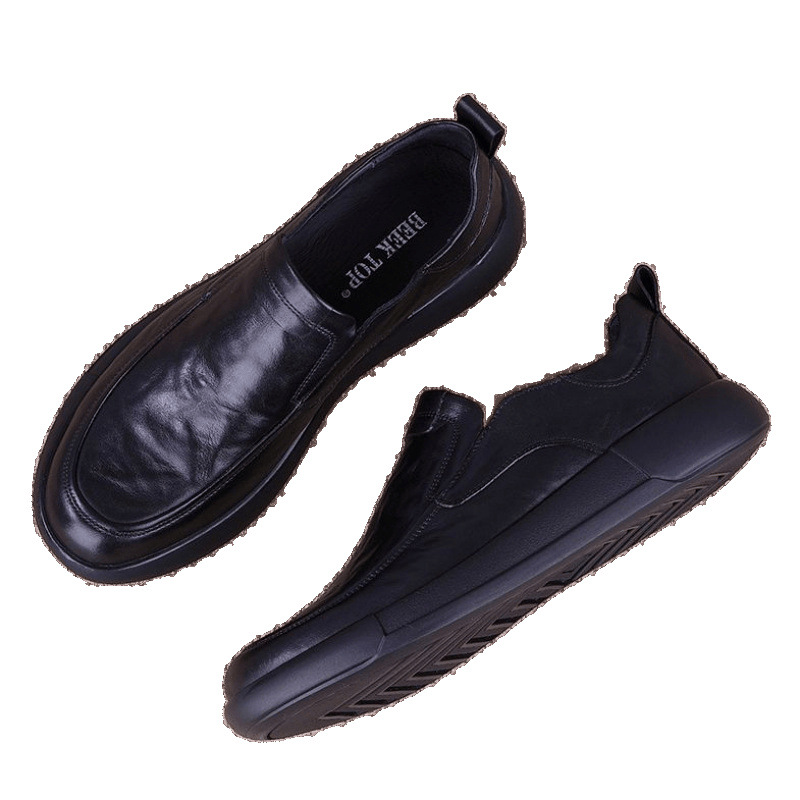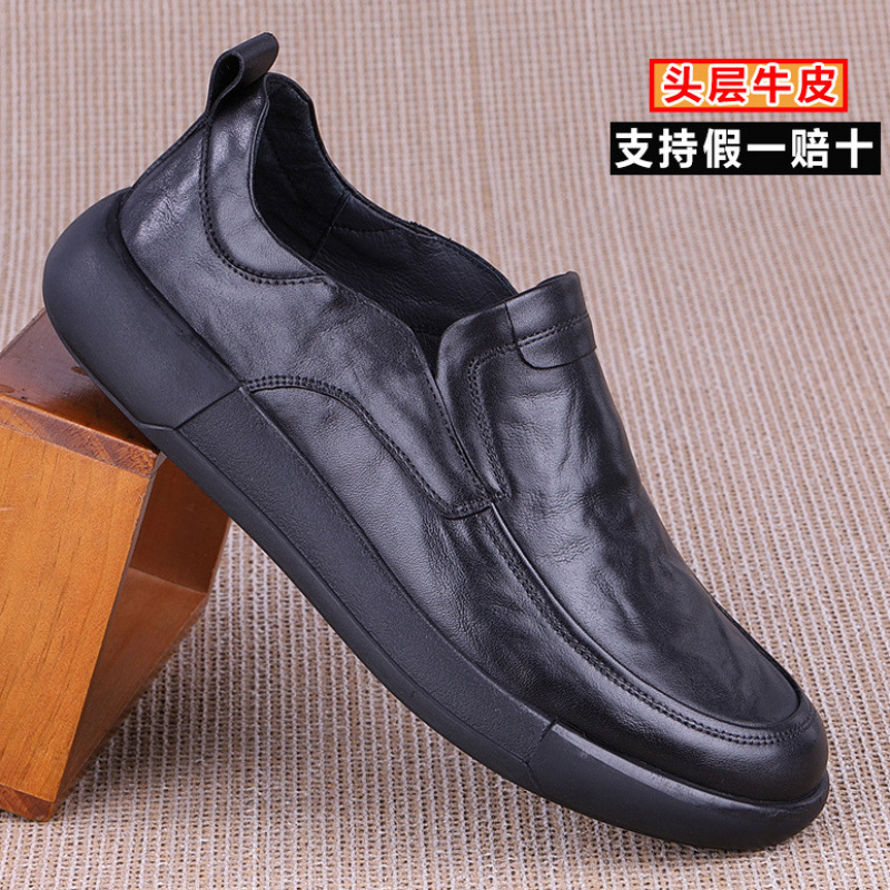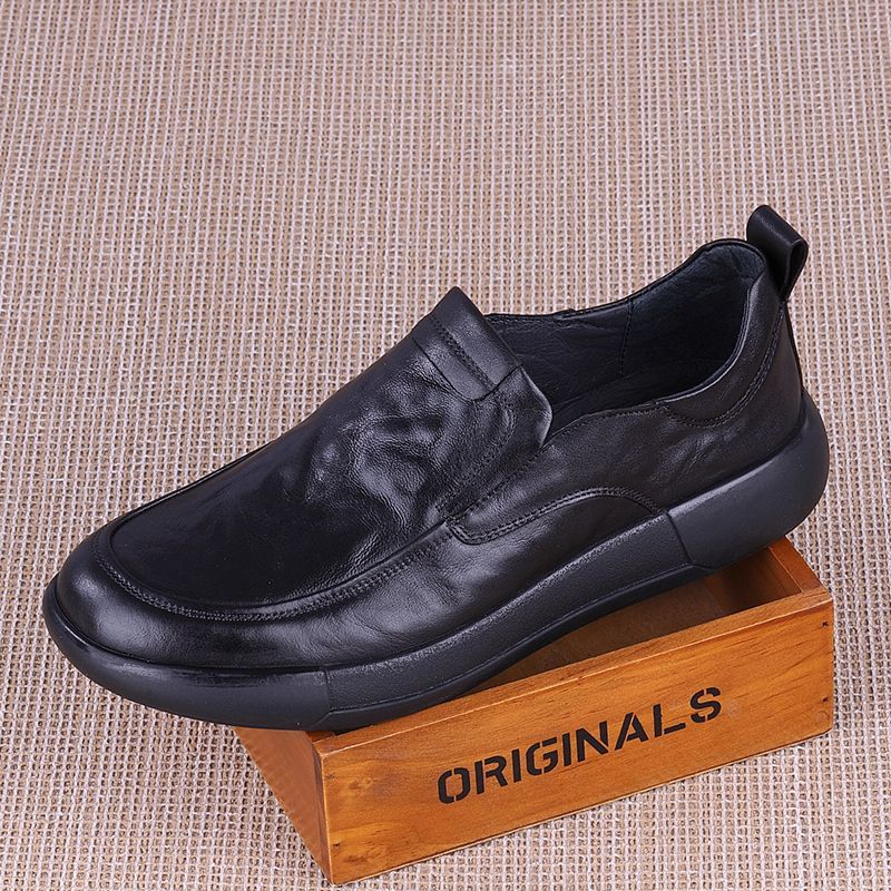 Главная страница > Мужские туфли без шнуровки из натуральной кожи с текстурой ручной обработки, полностью черная мягкая подошва, весенне-осенний стиль, повседневная обувь на толстой подошве, первый слой воловьей кожи.