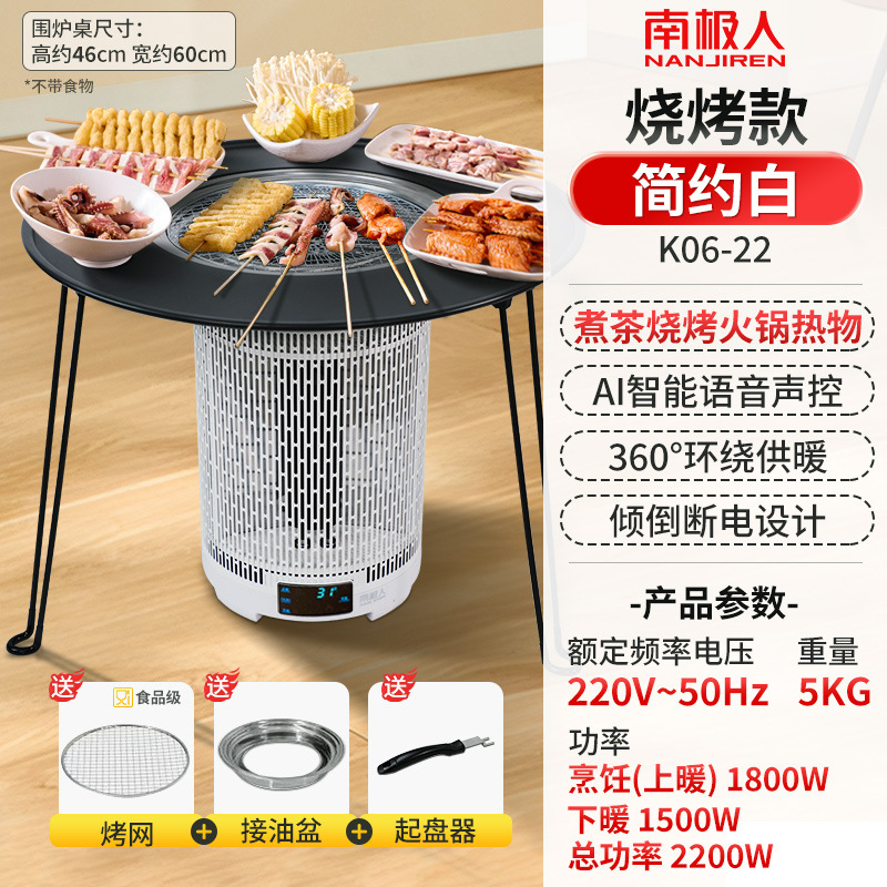 Белый интеллектуальный голос + пожарный стол [360°Быстрый нагрев|барбекю|Приготовьте чай] Бесплатный гриль для барбекю