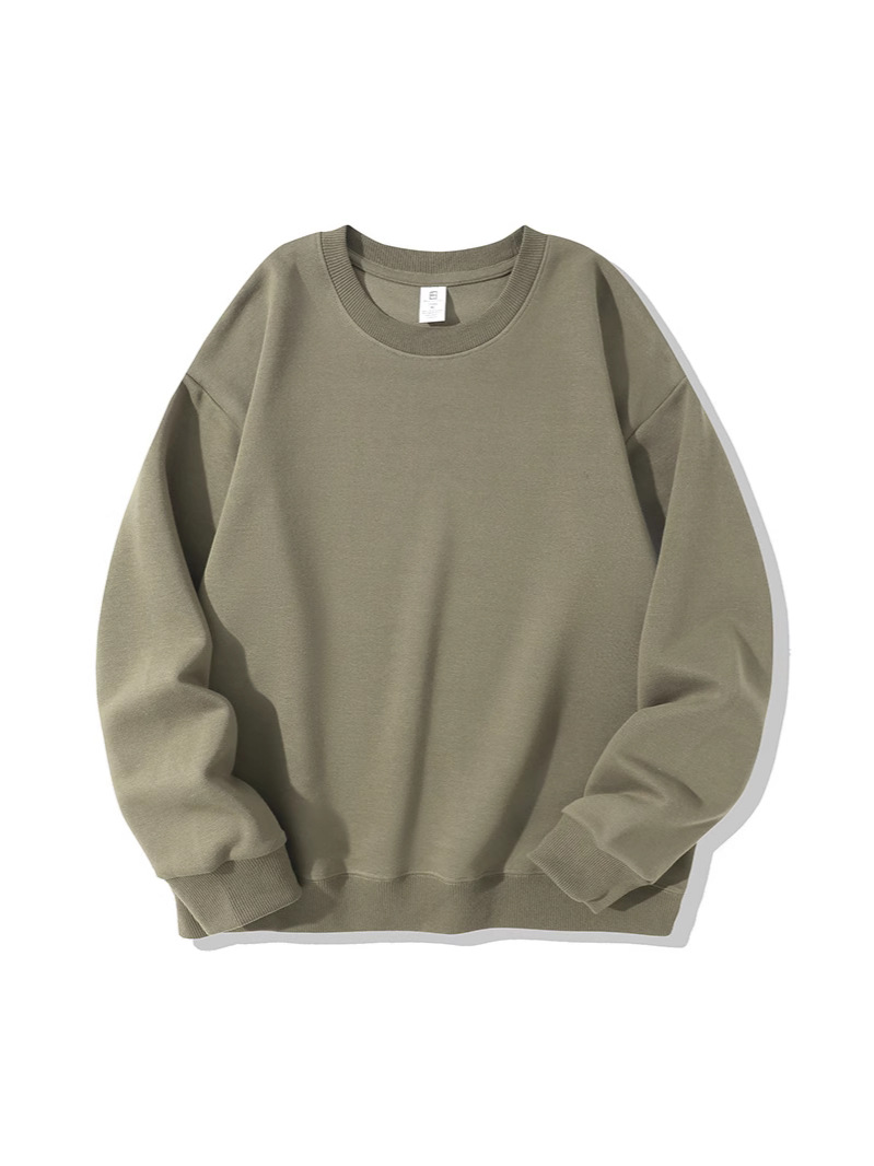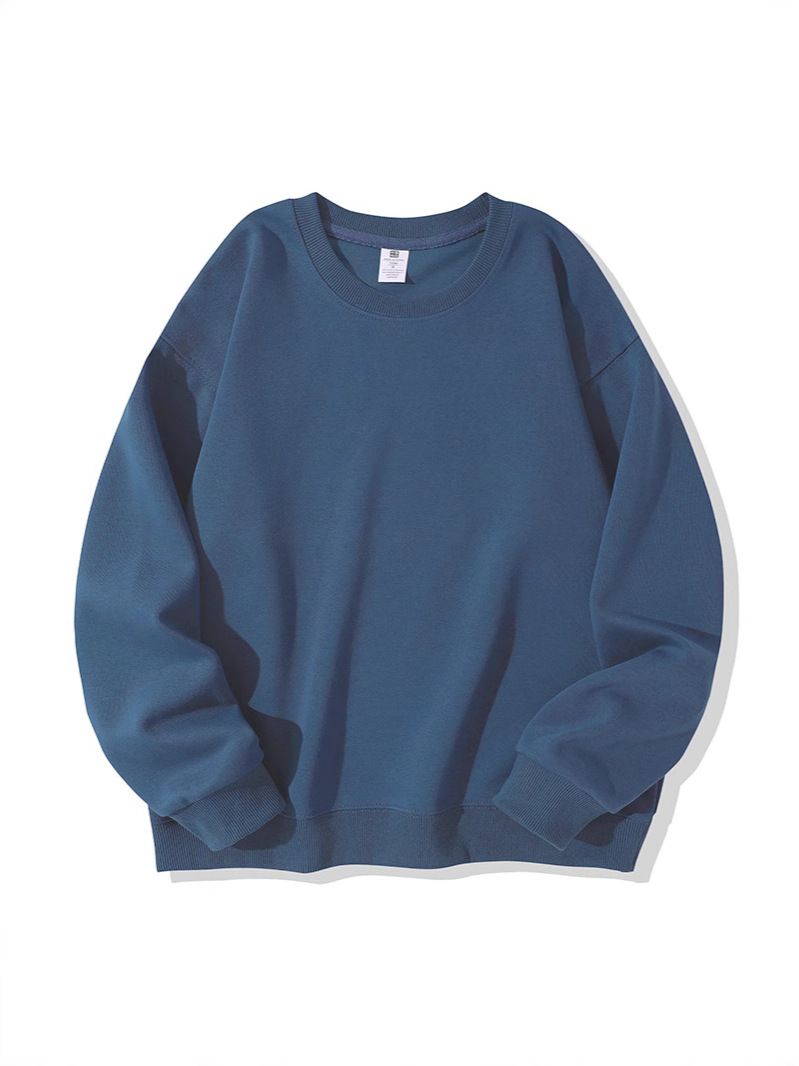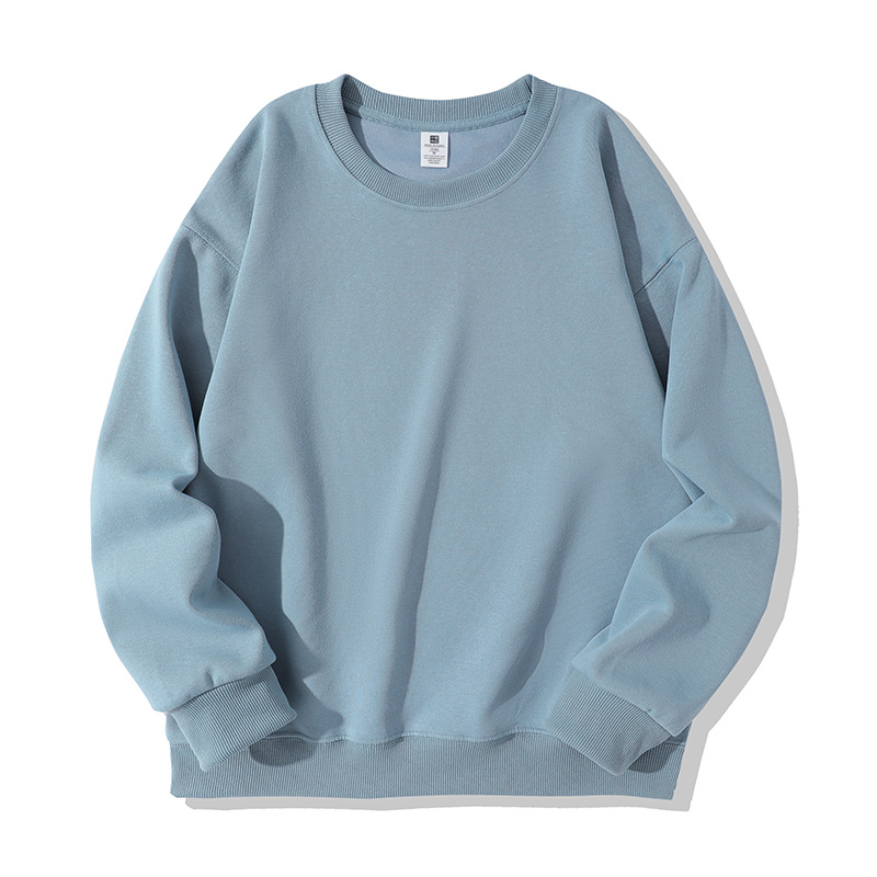 420G тяжелый свитер мужской осенний и зимний круглый воротник из чистого хлопка свободный с длинными рукавами сплошной цвет для отдыха