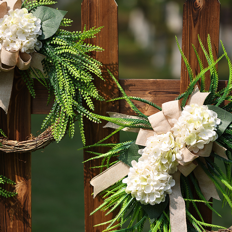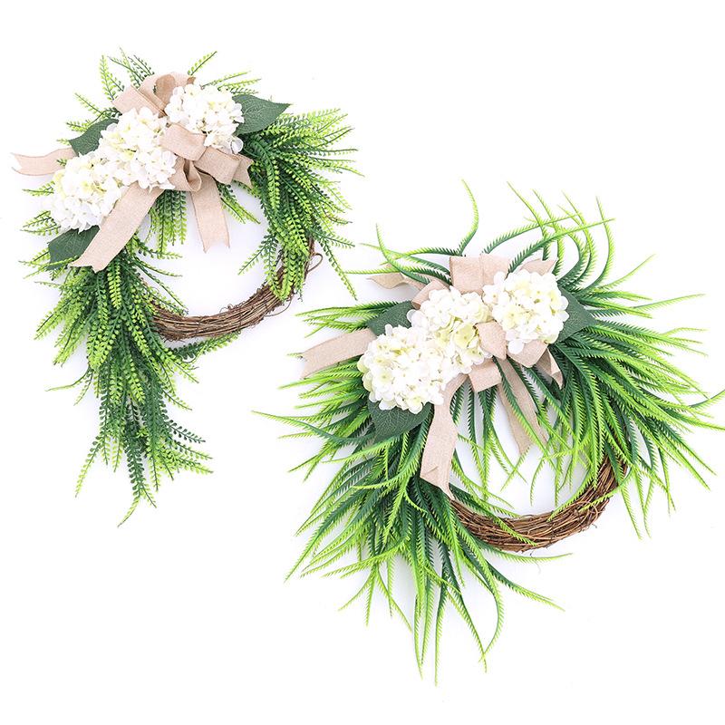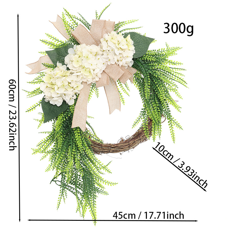 Главная страница > Гирлянда из гортензий, листьев ивы в стиле пастораль для украшения дома, подвесная на дверь или стену в стиле загородного дома.