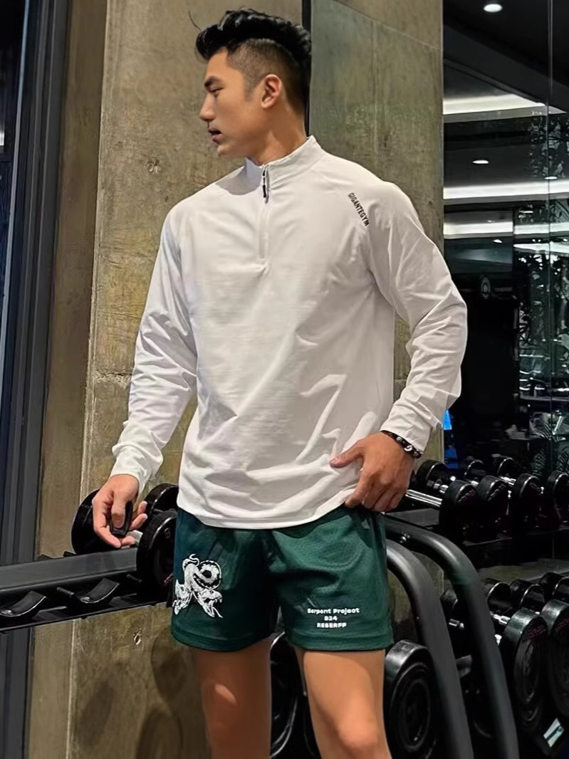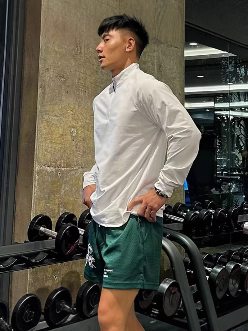 Главная страница > Фитнес с длинными рукавами мужская свободная эластичная половинная молния спортивная футболка американский бег Весна и осень баскетбольная тренировочная одежда