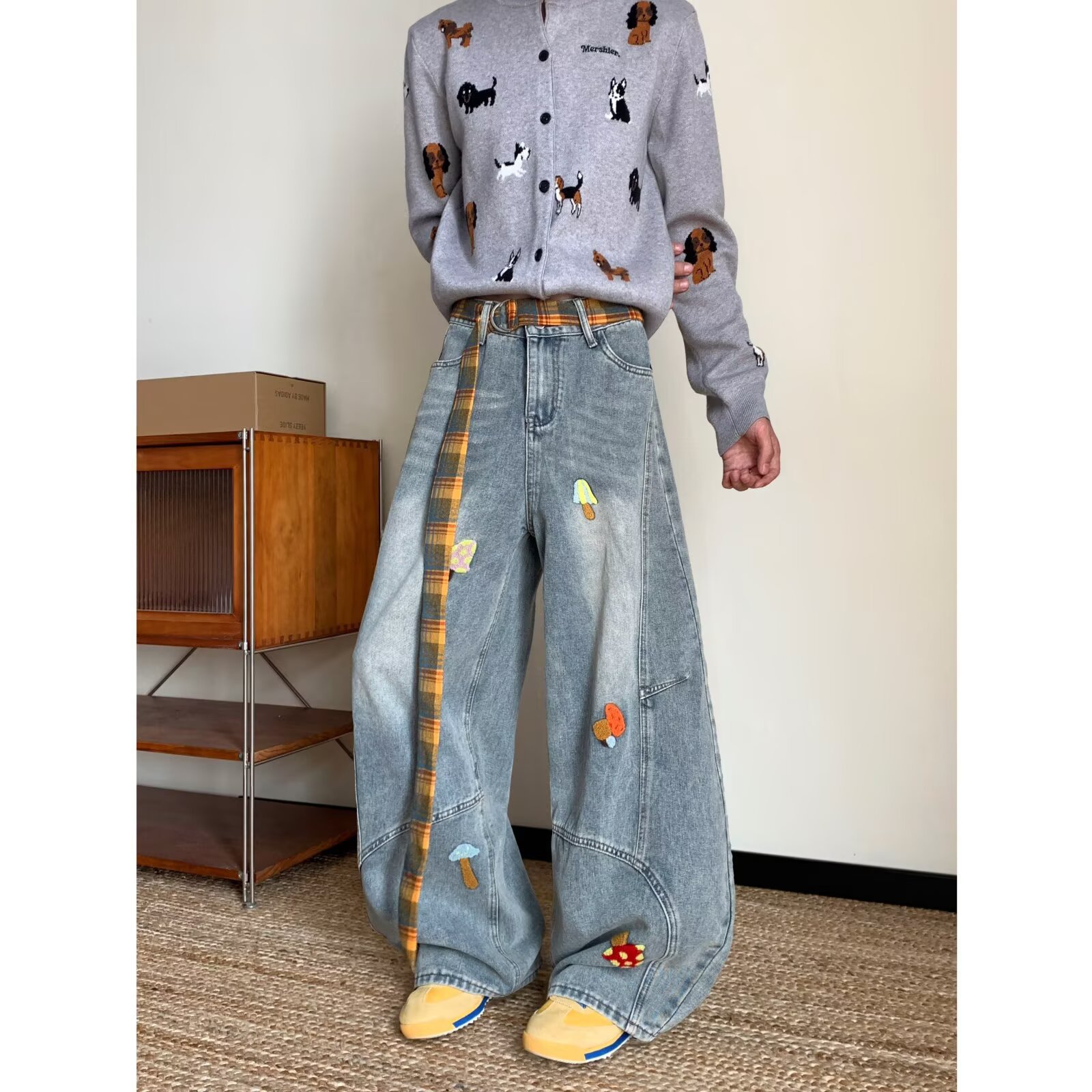 美式复古新款水洗直筒宽松做旧牛仔裤男女同款秋冬季多口袋长裤潮