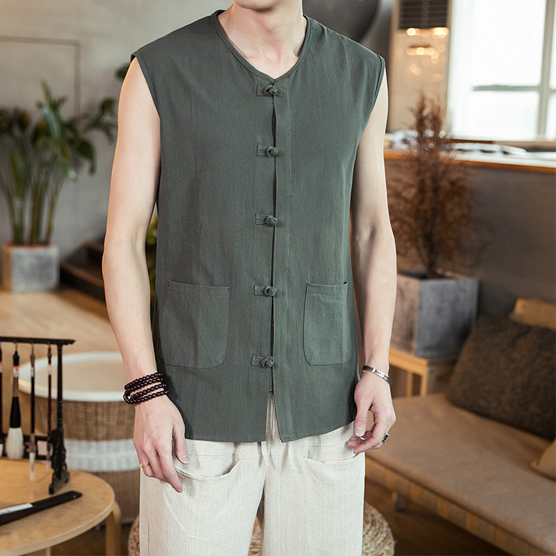 Китайский стиль Летний хлопок без рукавов