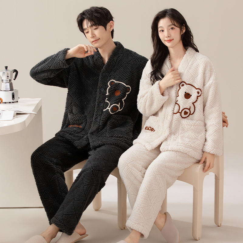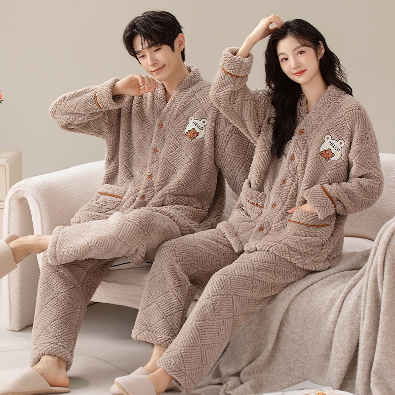 Главная страница > Коралловый бархат Пижама Зимний V Длинные рукава 2025 Новый зимний теплый и удобный может носить костюм на улице