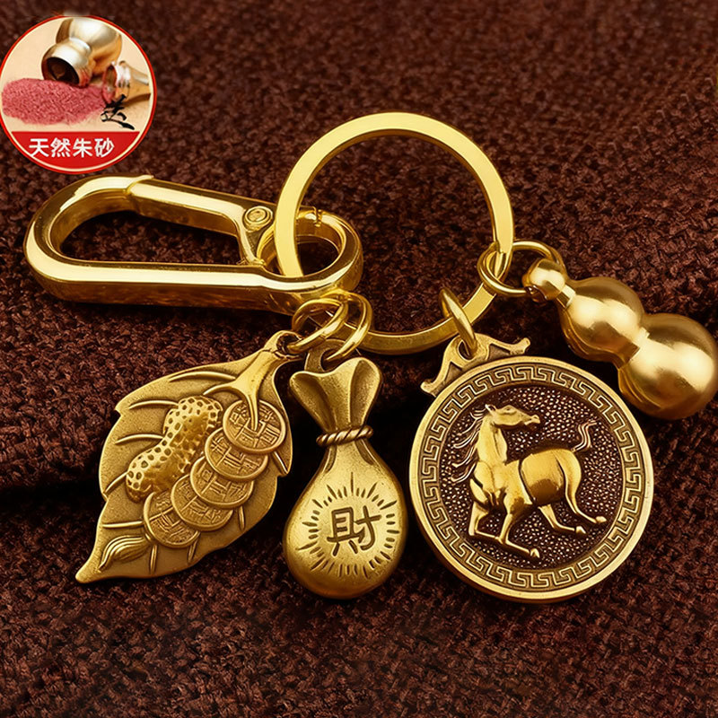 [Лошадь-монета Зодиака] + Листья на удачу + Сумка на удачу + Карабин + Гourd {Бесплатный киноварь}