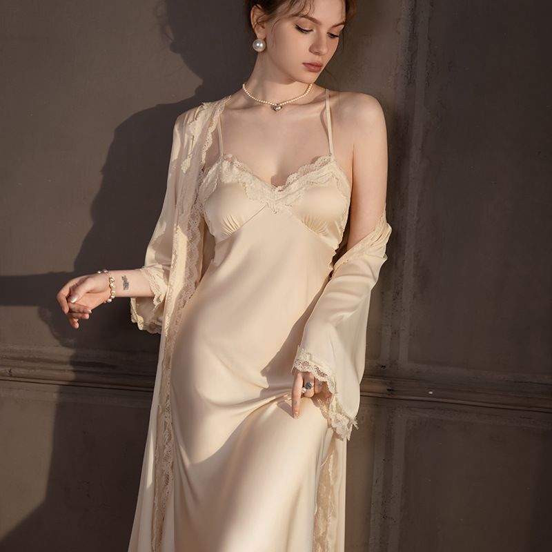 Главная страница > Сексуальная пижама женский ледяной шелк летом с нагрудным ковриком, пижака, ночная одежда из двух частей, длинный шелковый домашний костюм