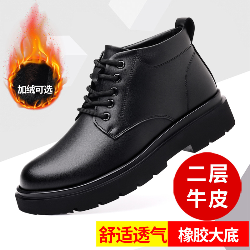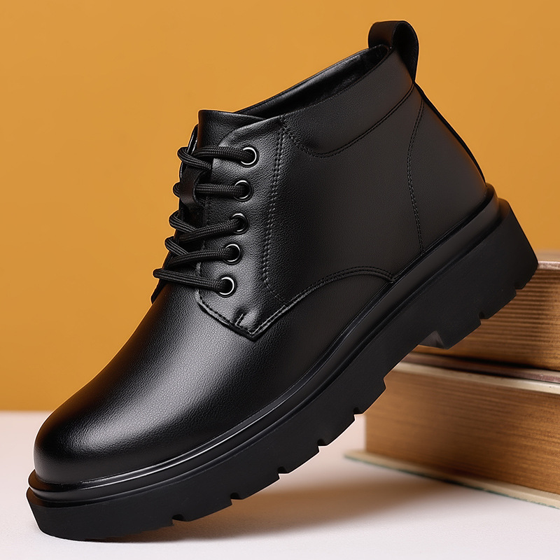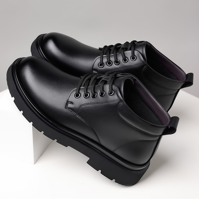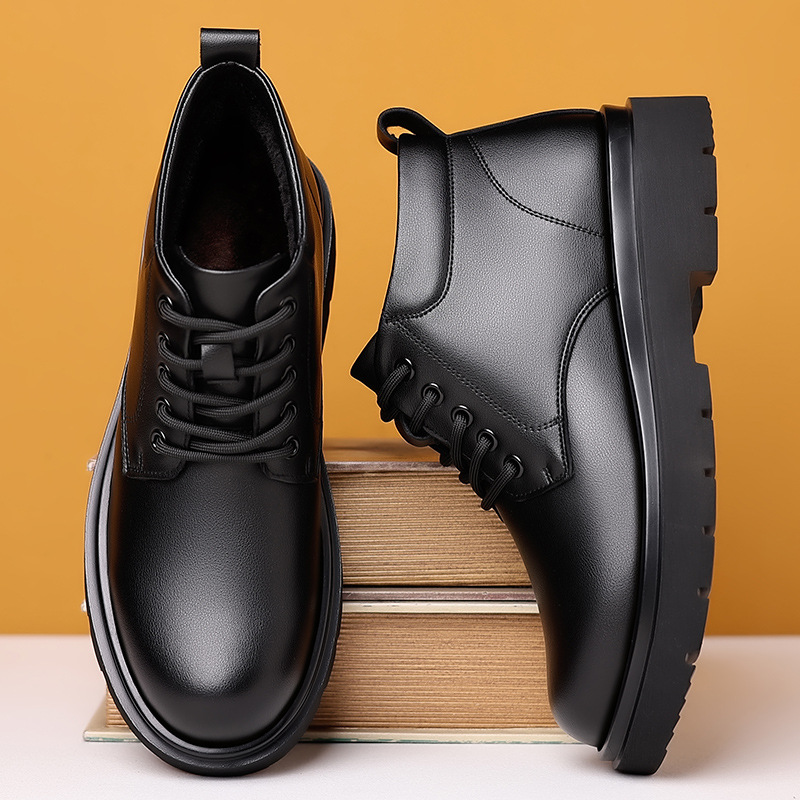 Главная страница > Мужская обувь Ботинки из хлопчатобумажной кожи в британском стиле с верхом средней высоты на флисовой подкладке Мужская осенне-зимняя повседневная обувь из натуральной кожи на мягкой подошве в Корейском стиле Короткие мужские ботинки