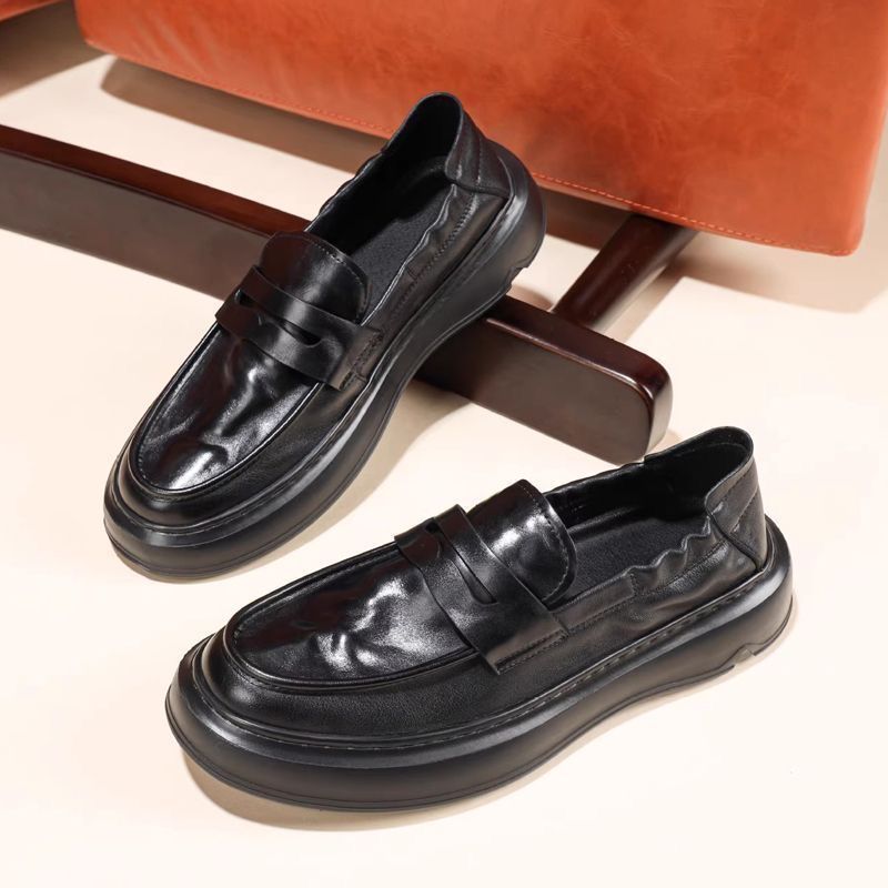 Главная страница > 2025 новые стильные туфли-бини из мягкой кожи с мягкой поверхностью, черные маленькие кожаные туфли, лоферы, мужские повседневные туфли без шнуровки в японском стиле на мягкой подошве