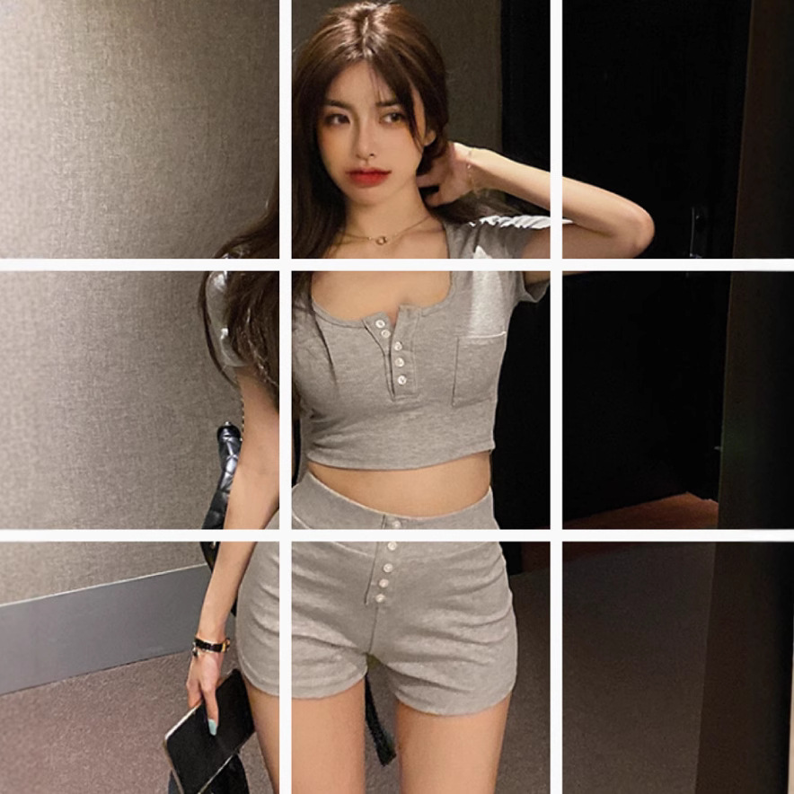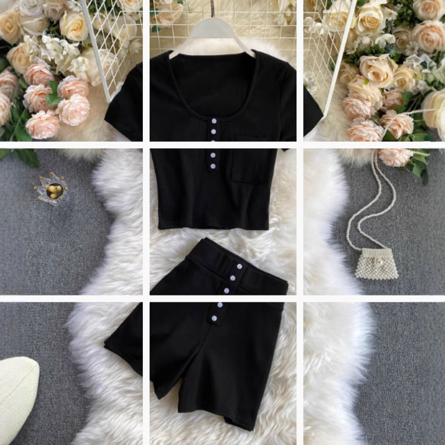 Главная страница > Модный костюм женский летний сексуальный короткий топ + шорты с высокой талией, комплект из двух частей S1556, топ и нижний костюм с пряжкой