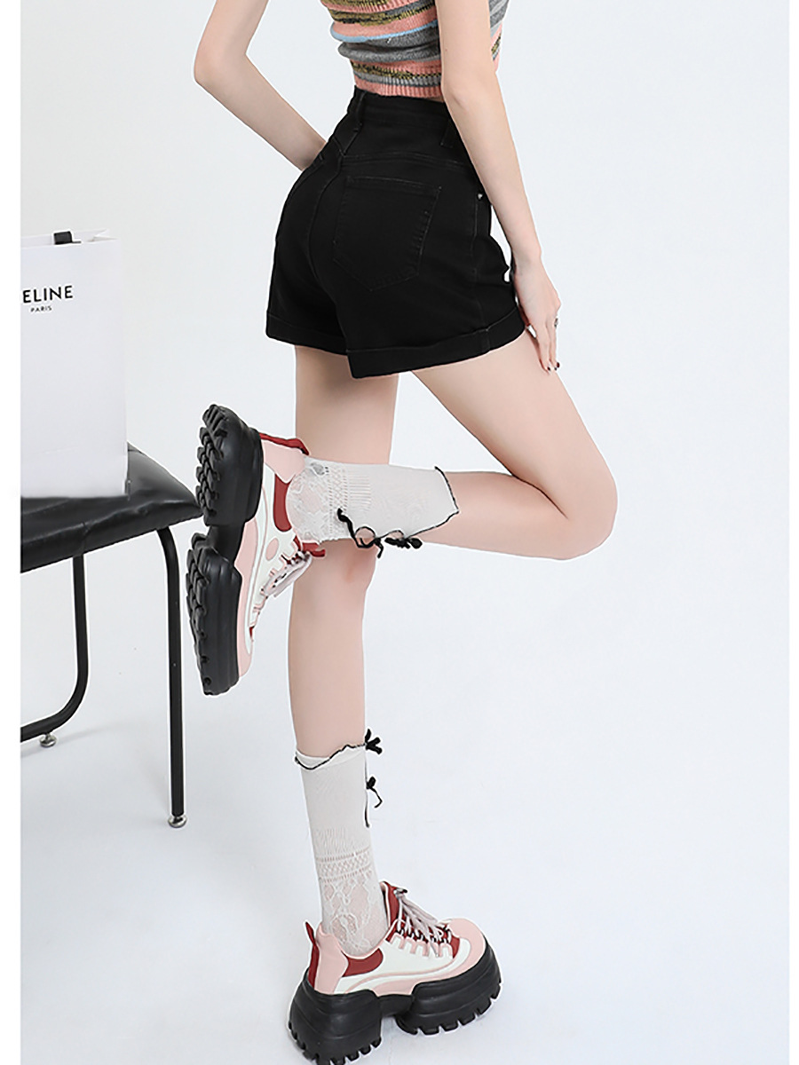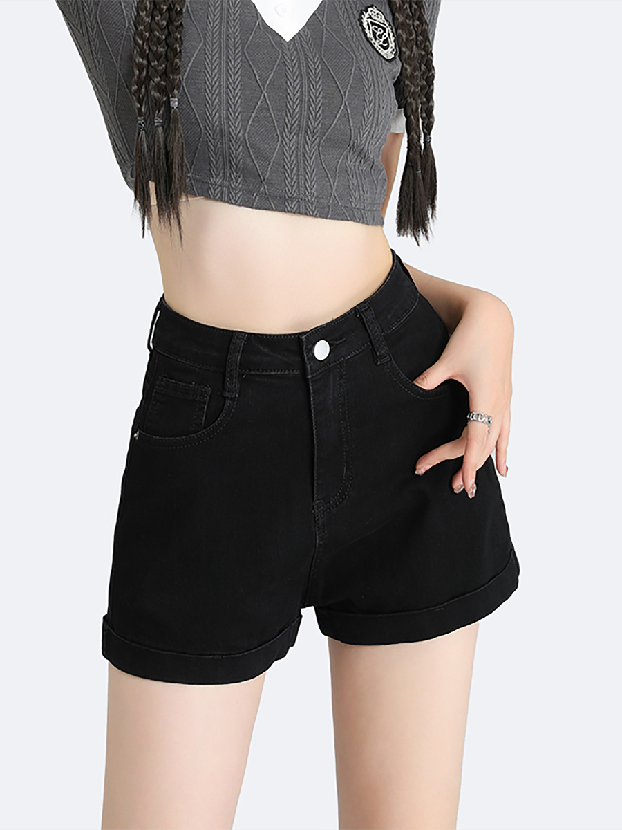 Главная страница > Черные джинсовые шорты для женщин, новинка 2025 года, популярные летние тонкие шорты трапециевидной формы с высокой талией и закатанными штанинами