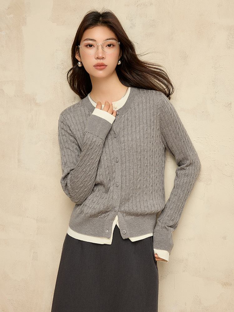 Главная страница > Высококачественный женский шерстяной свитер из двух частей с цветными блоками, новая модель женской вязаной кардиганной куртки на осень.