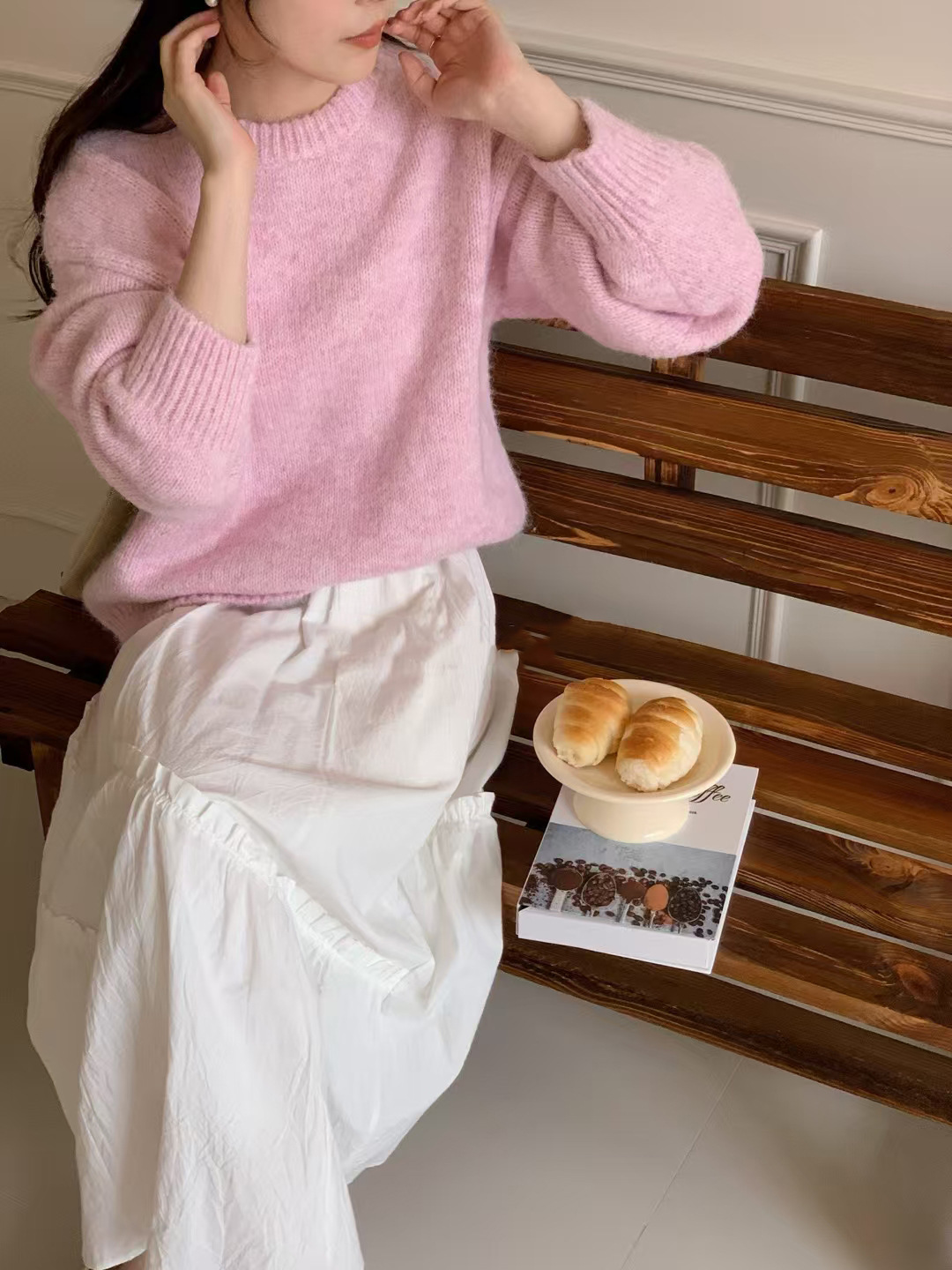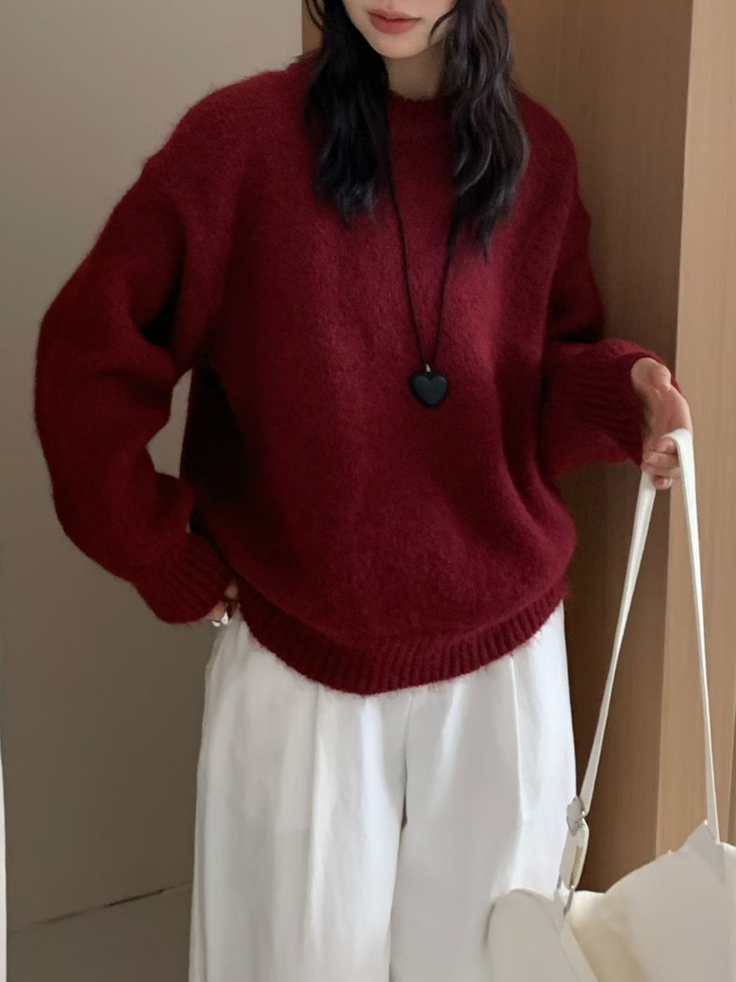 Новая корейская свободная мягкая клейкая трикотажная куртка весной 2025 года сплошной цвет нежный ленивый свитер пуловер женский прилив