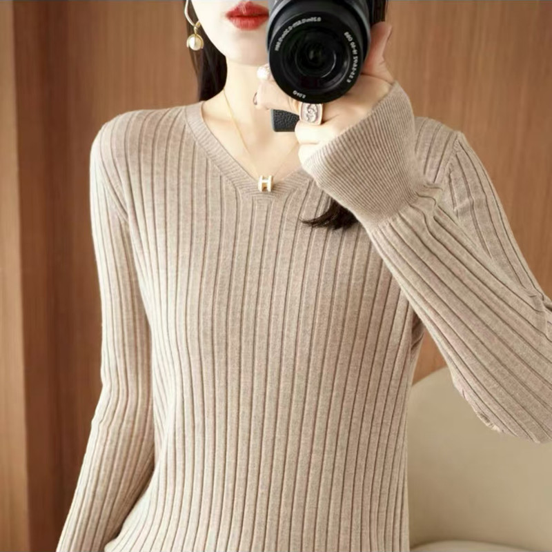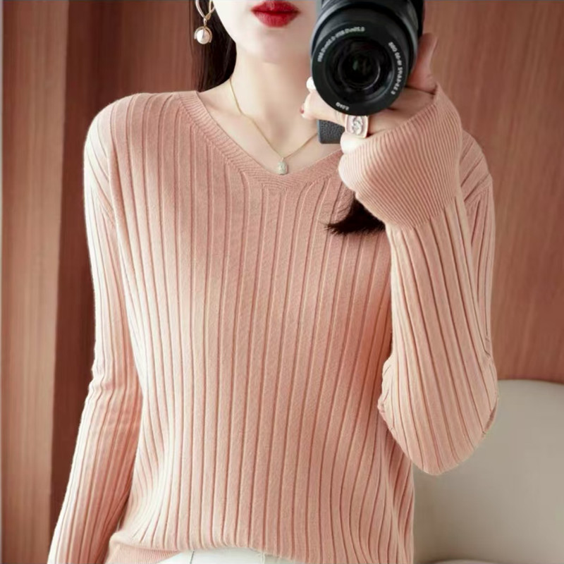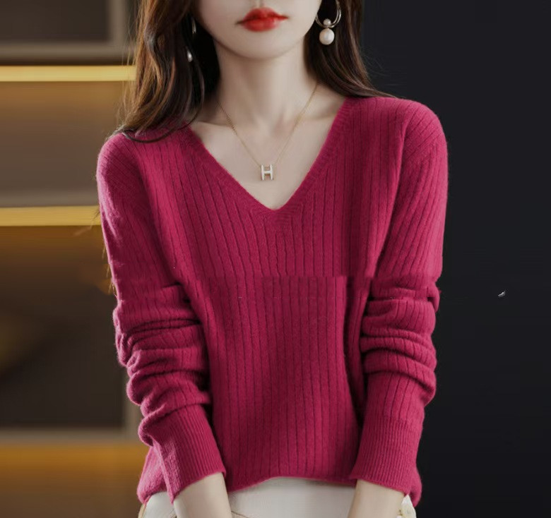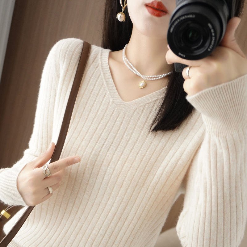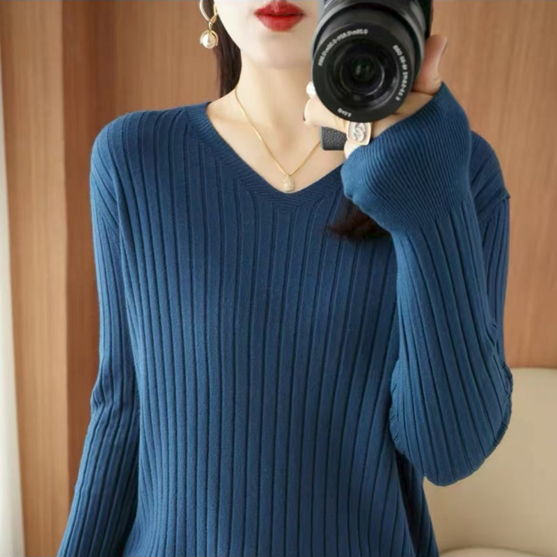 Главная страница > Женский трикотажный пуловер с V-образным вырезом, свитер с длинным рукавом, короткая базовая рубашка, стильная нижняя одежда, топ для внешней торговли, оптовая продажа