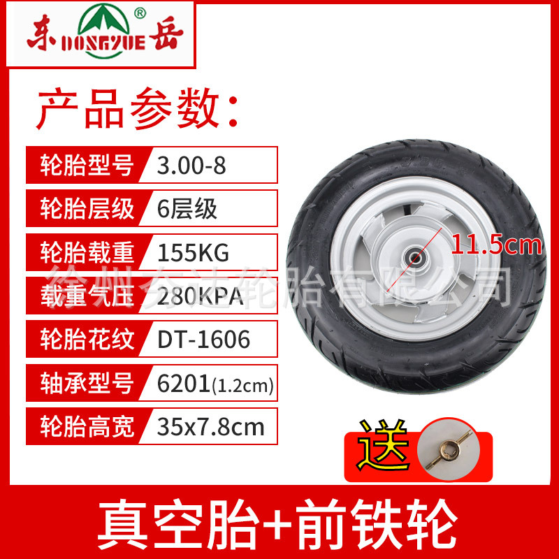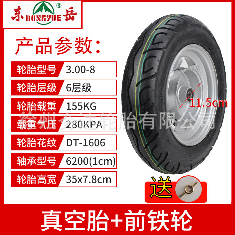 3,00-8 вакуумная шина переднее железное колесо черный (отверстие вала 10 головка барабанного тормоза 110 мм)