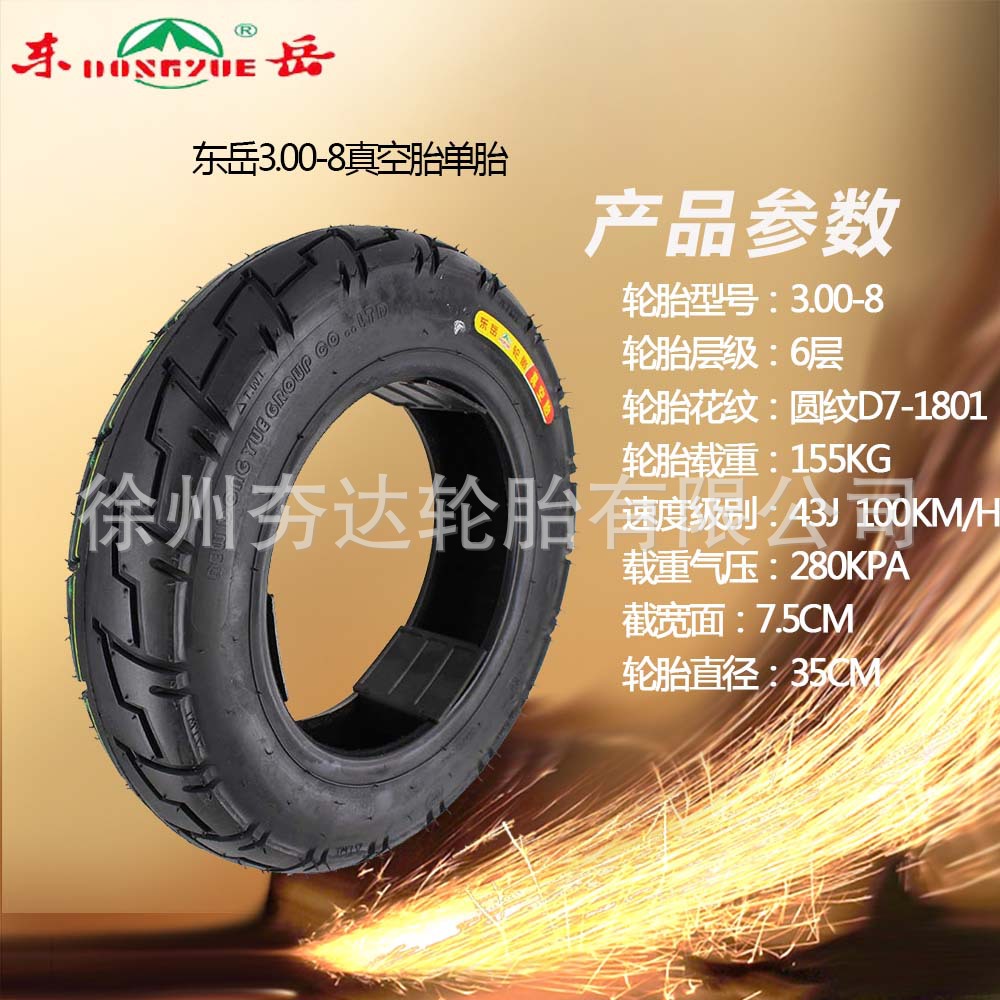 Бескамерная шина Dongyue 3.00-8, подходящая для электрических трехколесных велосипедов для пожилых людей и четырехколесных транспортных средств для отдыха, а также бескамерная шина 3.50-8 с колесной ступицей.