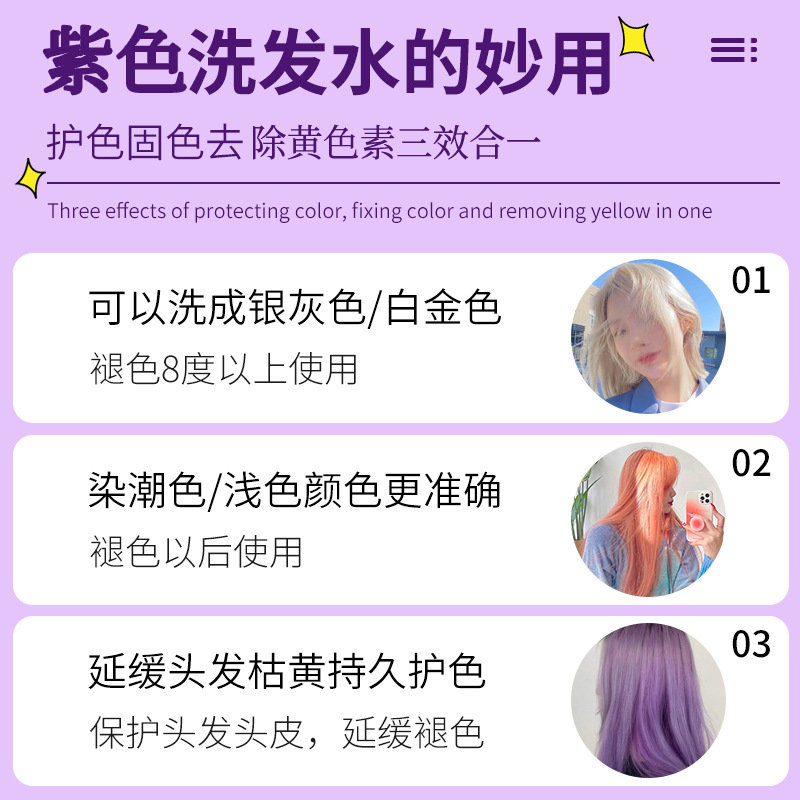 Фиолетовый шампунь VIKADA нейтрализует желтые пигменты, отбеливает волосы и ухаживает за седыми волосами, не повреждая волосы. Пробный пакет