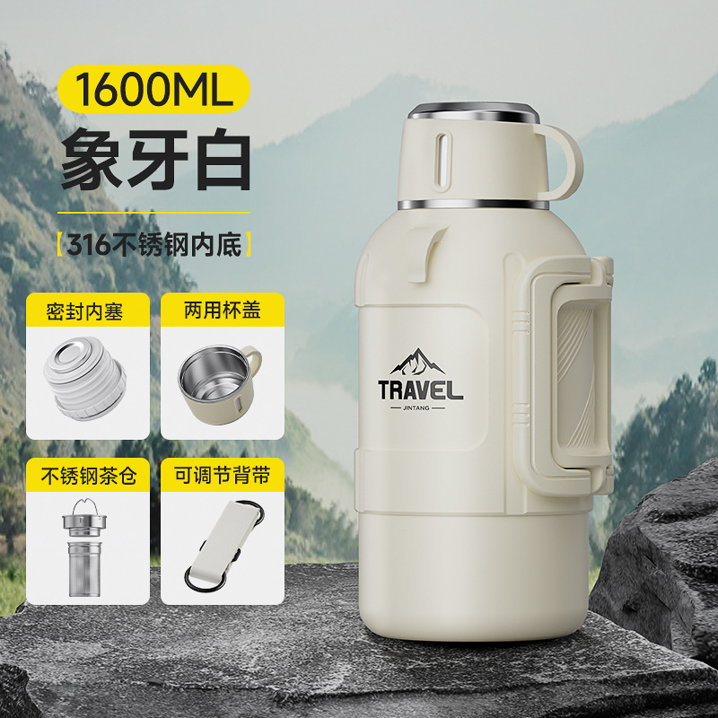 Белый цвет слоновой кости, 1600 мл, поставляется с плечевым ремнем и отделением для чая * одна крышка для двух использований.