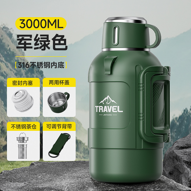 Военный зеленый цвет, 3000 мл, в комплект входит плечевой ремень и отделение для чая * одна крышка для двух целей.