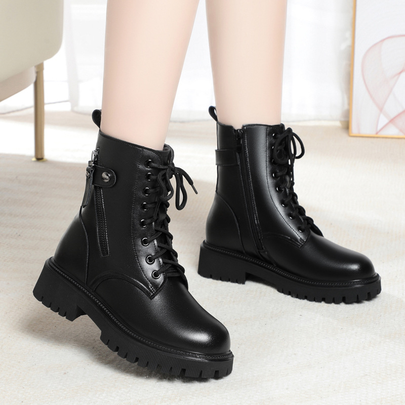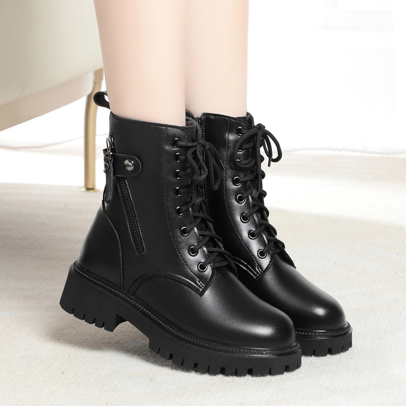 Главная страница > Ботинки Martin из мягкой кожи, женские ботильоны, средний каблук на флисовой подкладке, зима 2023, новые шерстяные хлопчатобумажные туфли, женские ботинки на толстом каблуке, теплая осень