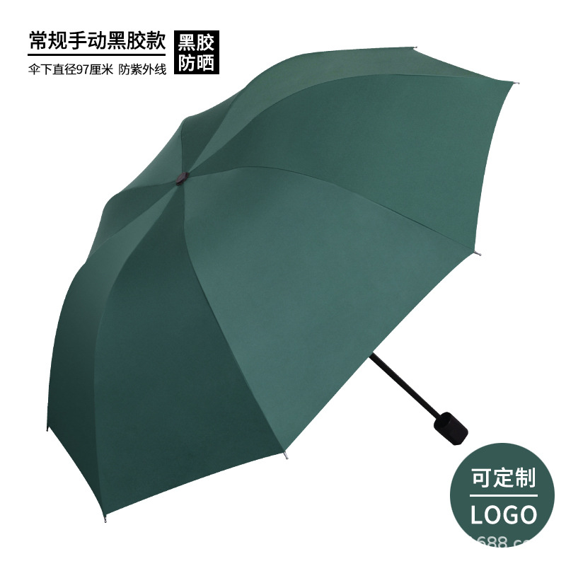 Темно-зеленый виниловый зонт с 8 косточками, утолщенный зонт с ручным управлением