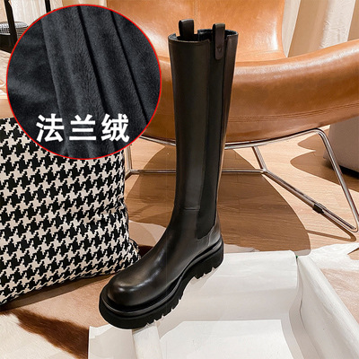 [2 вида трубчатого окружности] Рыцарские сапоги женские, толстая подошва, внутренние ботинки, ботинки большого размера для маленьких людей, расширяющие жир мм.