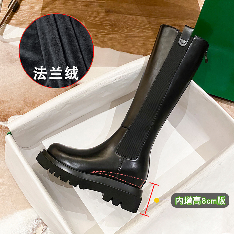 Главная страница > [2 вида трубчатого окружности] Рыцарские сапоги женские, толстая подошва, внутренние ботинки, ботинки большого размера для маленьких людей, расширяющие жир мм.