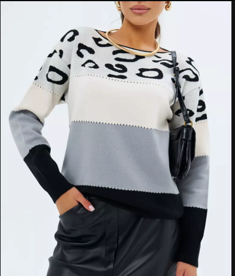 Главная страница > Цветной леопардовый с круглым вырезом повседневный свитер осень-зима новый женский трансграничный вязаный свитер женский пуловер с длинными рукавами нижний свитер